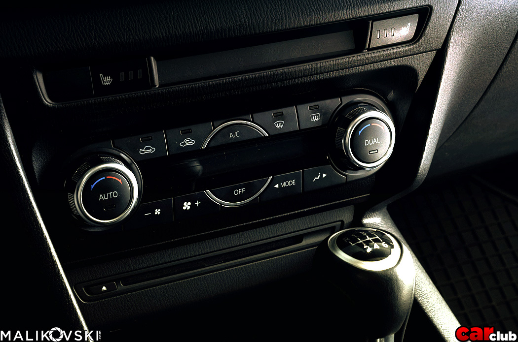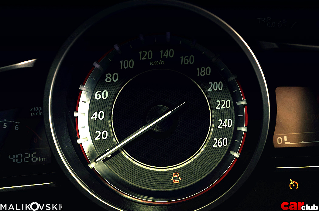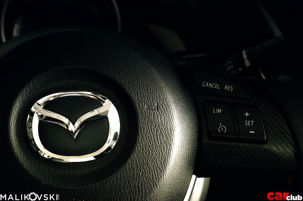 На крајот, можеме да зборуваме и за опремата и безбедноста. Бидејќи се работеше за модел со високото Revolution ниво на опрема, добивме одлични ксенонски светла со LED дневни светла, паркинг камера, седишта со греење, навигациски уред, темпомат, Keyless стартување, одличен аудио уред со можност за користење надворешни извори за музика, Bluetooth, едно чудо воздушни перници, разно-разни сензори за дожд и светлина, Heads-Up дисплеј и уште многу други корисни работи – вака би требало да биде опремен секој автомобил! Секако, покрај многуте воздушни перници, тестниот модел имаше и цела лепеза на електронски безбедносни системи како што се ABS, ESP, Rear Vehicle Monitoring системот кој ве известува доколку има автомобил во слепата точка, но од особено значење е и одличниот резултат на EuroNCAP тестирањата – Мазда 3 освои максимални 5 ѕвездички на стандардизираниот тест за безбедност – и не би ни очекувале ништо помалку.