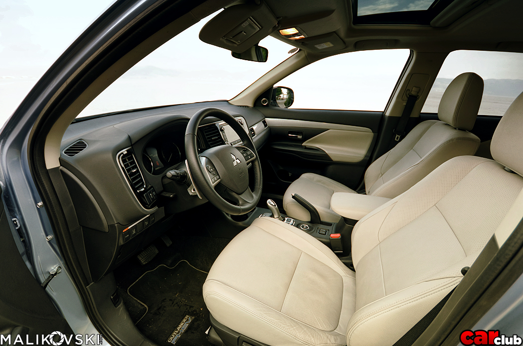Внатрешноста е истата онаа која веќе ја познаваме од Outlander кој го возевме пред точно една година. Седиштата се комфорни, прегледноста е задоволителна а камерата за движење наназад го олеснува паркирањето и маневрирањето во градскиот метеж. Ергономијата не е на баш највисоко ниво (на пример, копчето за промена на информациите прикажани на дисплејот пред возачот е поставено од левата страна на управувачот, каде не е во видното поле на возачот, рачката од менувачот нема соодветен механички фидбек) но тоа се ситници на кои лесно се навикнавме. За жал, во PHEV го нема третиот ред седишта, па бројот на седишта изнесува 5.