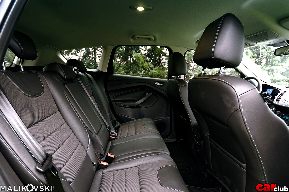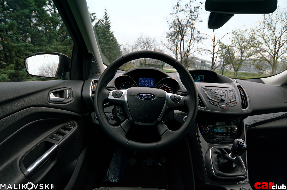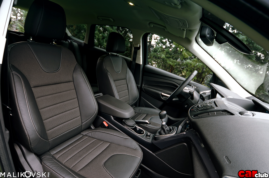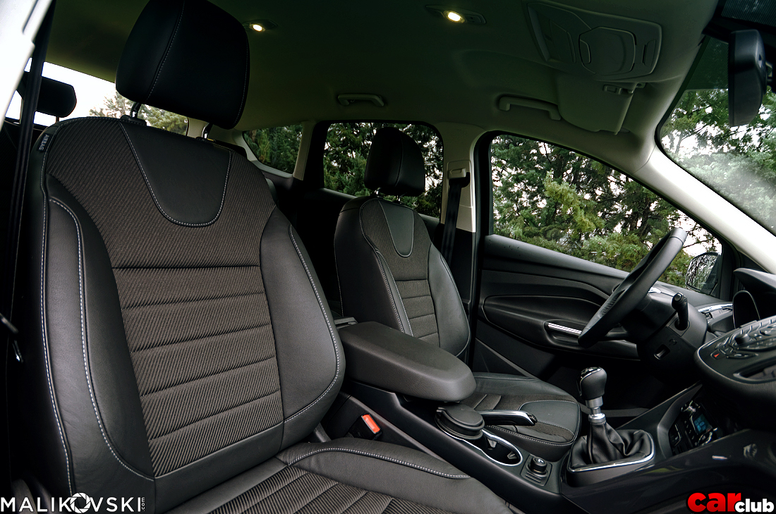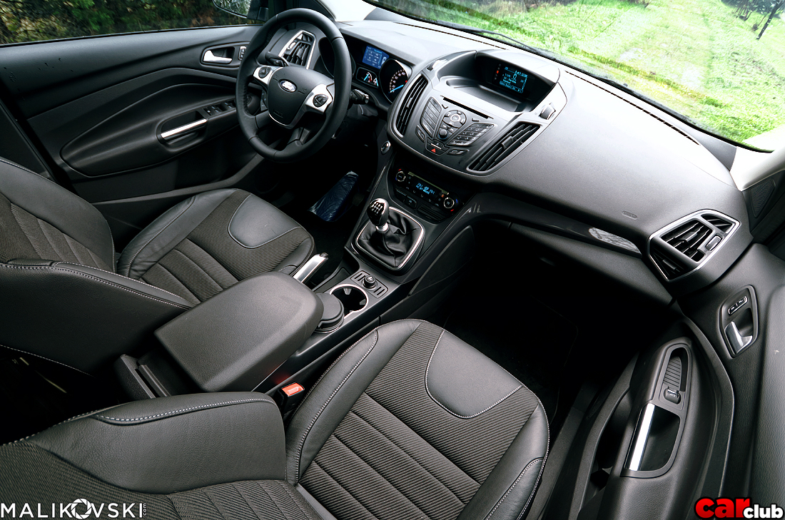Вистински пријатно изненадување нè очекува во ентериерот. Нашиот тестен примерок беше во Titanium нивото на опрема и дојде со прекрасни седишта обвиени во штоф и кожа кои се покажаа како исклучително комфорни и соодветни на намената и карактерот на Kuga. Истовремено, материјалите и завршната обработка беа на повисоко ниво од она што обично го очекуваме во оваа класа – меката кожа со која беше обложен управувачот заслужува особена пофалба – во Kuga се чувствувавме како во SUV кој припаѓа во класата погоре.
