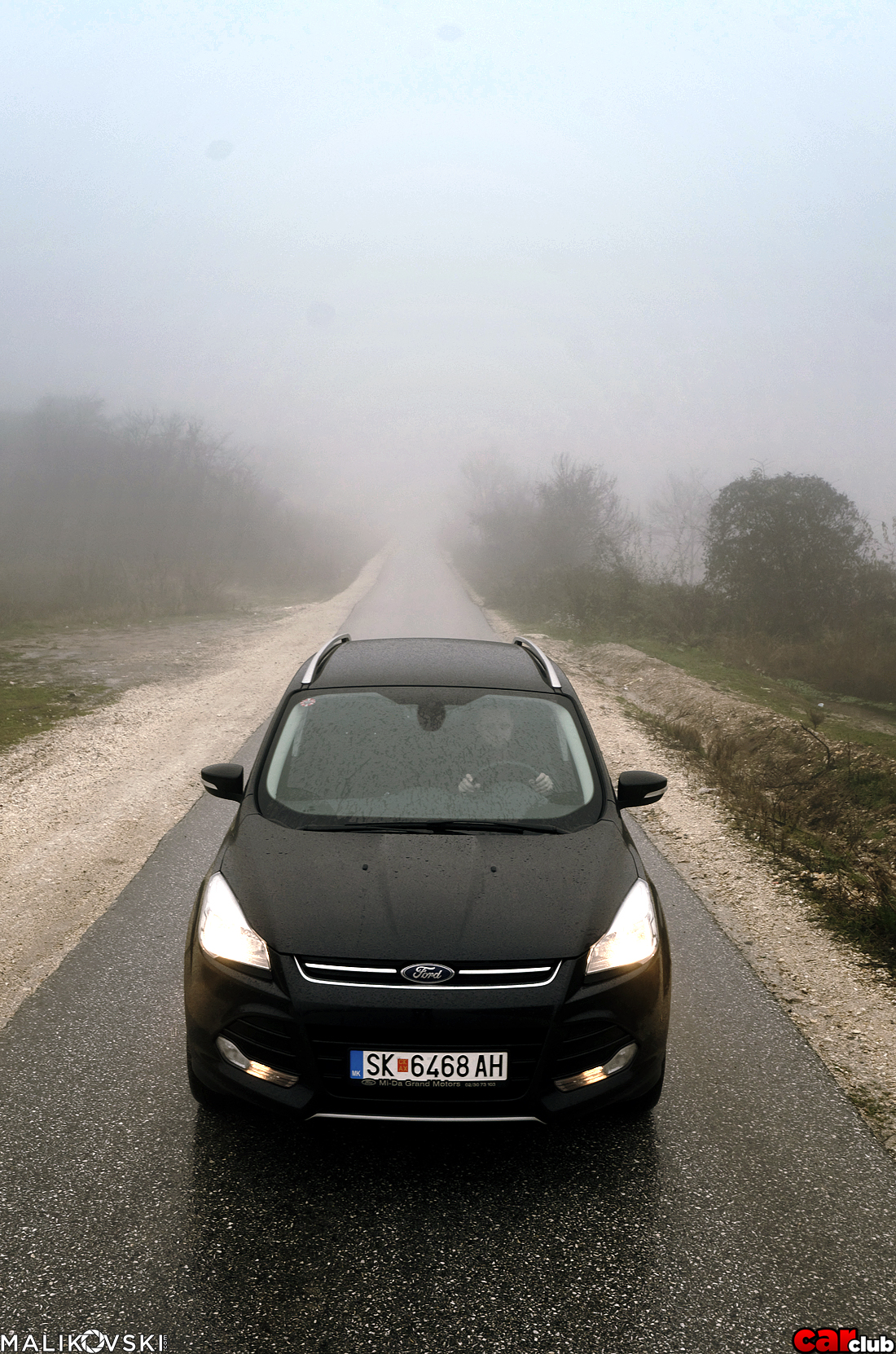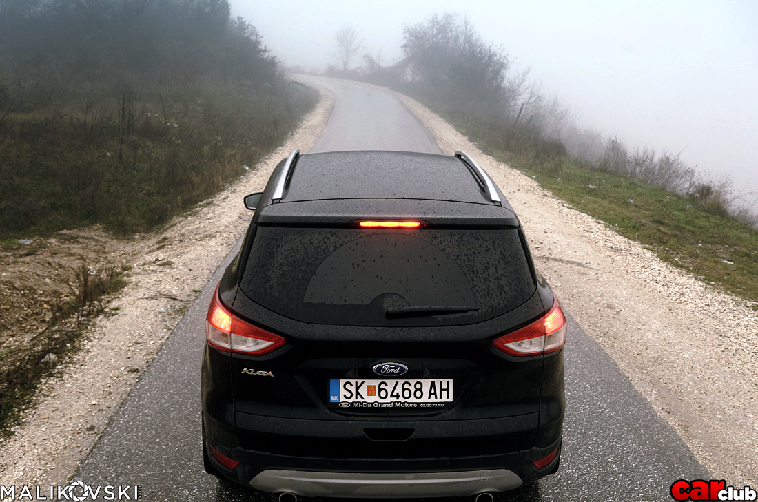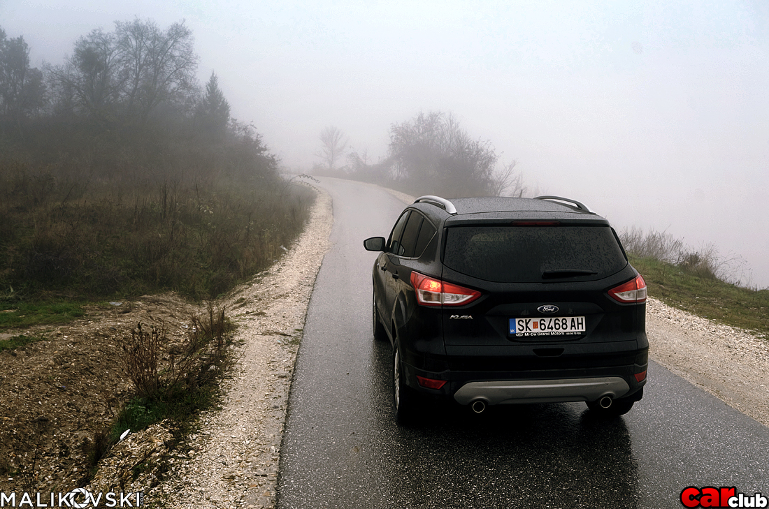 Имавме можност да го напуштиме асфалтот со Kuga и се израдувавме кога видовме дека без никакви потешкотии успеавме да стигнеме и малку поодалечени локации. Сето ова е благодарение на одличниот Haldex погон на сите четири тркала и моќниот вртежен момент. Кога ќе забележи пролизгување, електронскиот мозок веднаш префрла моќност кон онаа оска каде има највеќе тракција и успева да го извади автомобилот од непосакувани ситуации. За оние кои сакаат авантури, Kuga не е воопшто лош сопатник.