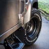Особено ни се допаѓаат челичните 16-инчни тркала кои одлично ја ги доловуваат вистинските амбиции на Land Rover Defender. Краткото меѓуоскино растојание и многуте детали го прават овој Land Rover Defender да изгледа агресивно, моќно и неуништиво – и ни доаѓа жал кога ќе ни текне дека Defender наскоро ќе замине во историјата и него ќе го замени помодерен теренец од Land Rover.