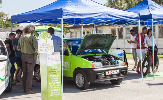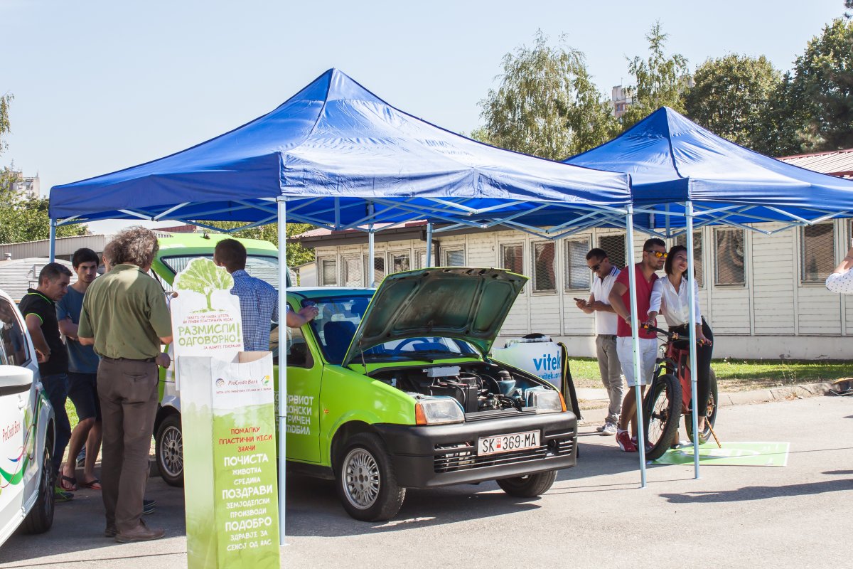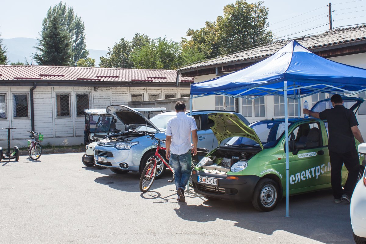 На платото пред Институтот за Возила пред Машинскиот Факултет во Скопје беа изложени неколку различни електрични возила, како и технологиите околу нив. Изложен беше малиот Mitsubishi i-MiEV кој ние веќе имавме можност да го возиме, компактниот и практичен Volkswagen e-up, но и неколку електрични возила кои се произведени токму тука во Македонија, и кои ние наскоро ќе ги возиме за подобро да ги запознаеме и да ги пренесеме нашите импресии.