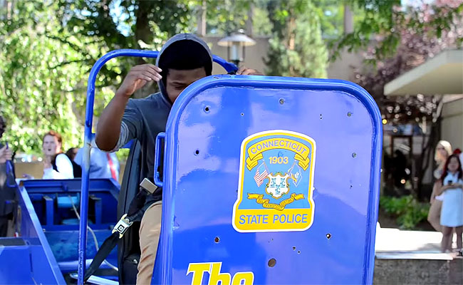 Полицијата од Конетикат во Соединетите Американски Држави има уникатен начин со кој ги убедува младите да го носат безбедносниот појас – го користи Убедувачот – уред кој симулира сообраќајна незгода со брзина од 5 милји на час!