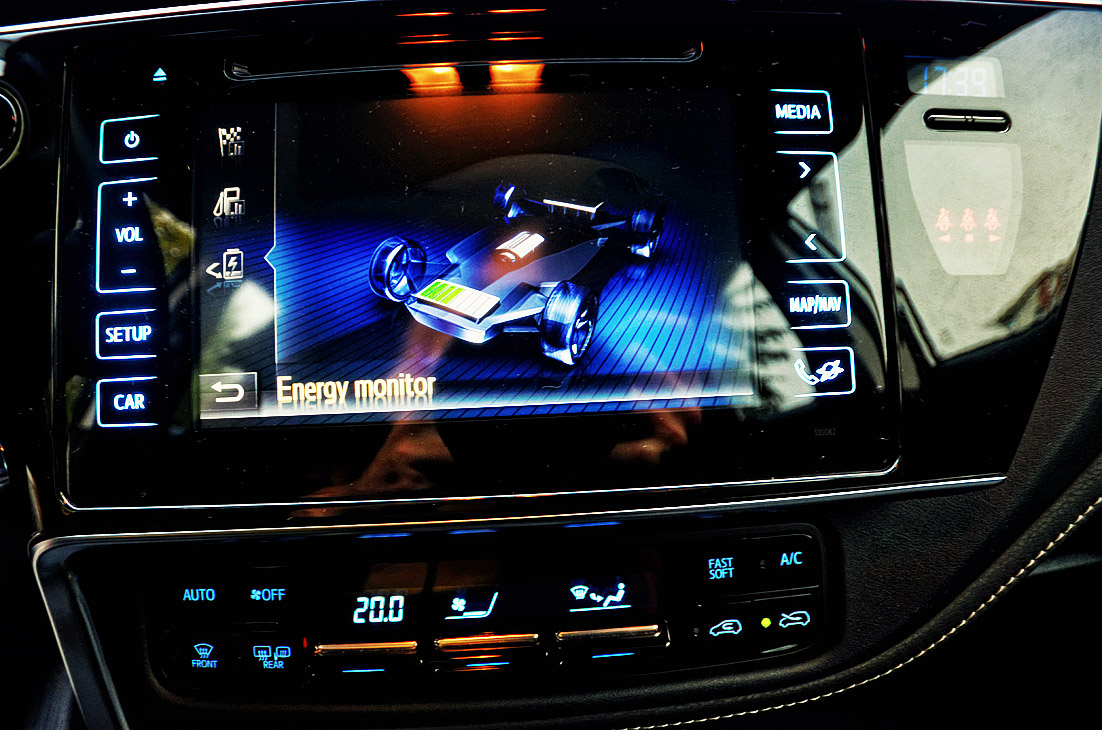 Сега веќе можеме да зборуваме за најважниот детал од нашиот тестен автомобил – хибридниот погон. Кај Auris Hybrid „соработуваат“ 1.8-литарски атмосферски бензинец и електромотор. Вкупно нудат системска моќност од 136 коњски сили и 142 Nm вртежен момент достапни при 4000 вртежи во минута. Дополнителен детал е CVT менувачот со континуирано варијабилна трансмисија кој нуди виртуелно неограничен број на степени на пренос и всушност гарантира дека моторот цело време ќе работи во најефикасниот можен режим. Забрзувањето до 100 километри на час трае 10.9 секунди, а максималната брзина е 180 километри на час.