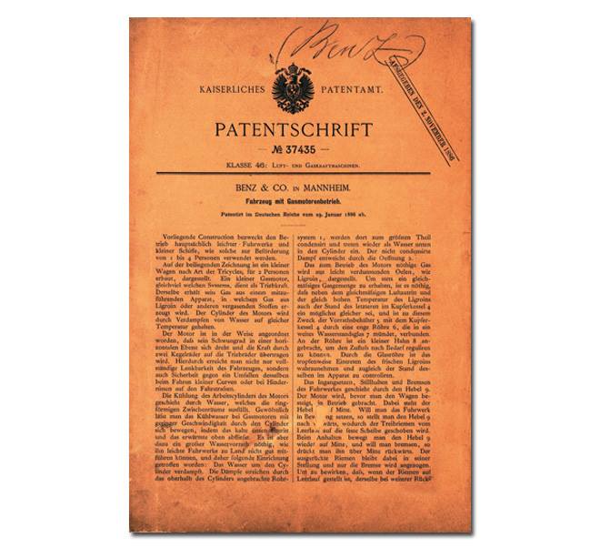 Без разлика како гледате на тоа – тоа беше документот кој го придвижи светот. На 29ти Јануари, во сега веќе навистина далечната 1886-та година Carl Benz го поднесе барањето за неговиот патент за „возило придвижувано од бензин.“ Ова е вистинскиот роденден на автомобилот. Подоцна истата година, Gottlieb Daimler ја направи неговата моторизирана кочиња, и во 1886-тата година започна 130-годишната успешна приказна на Mercedes-Benz.