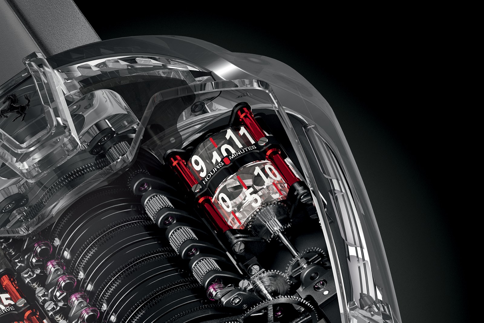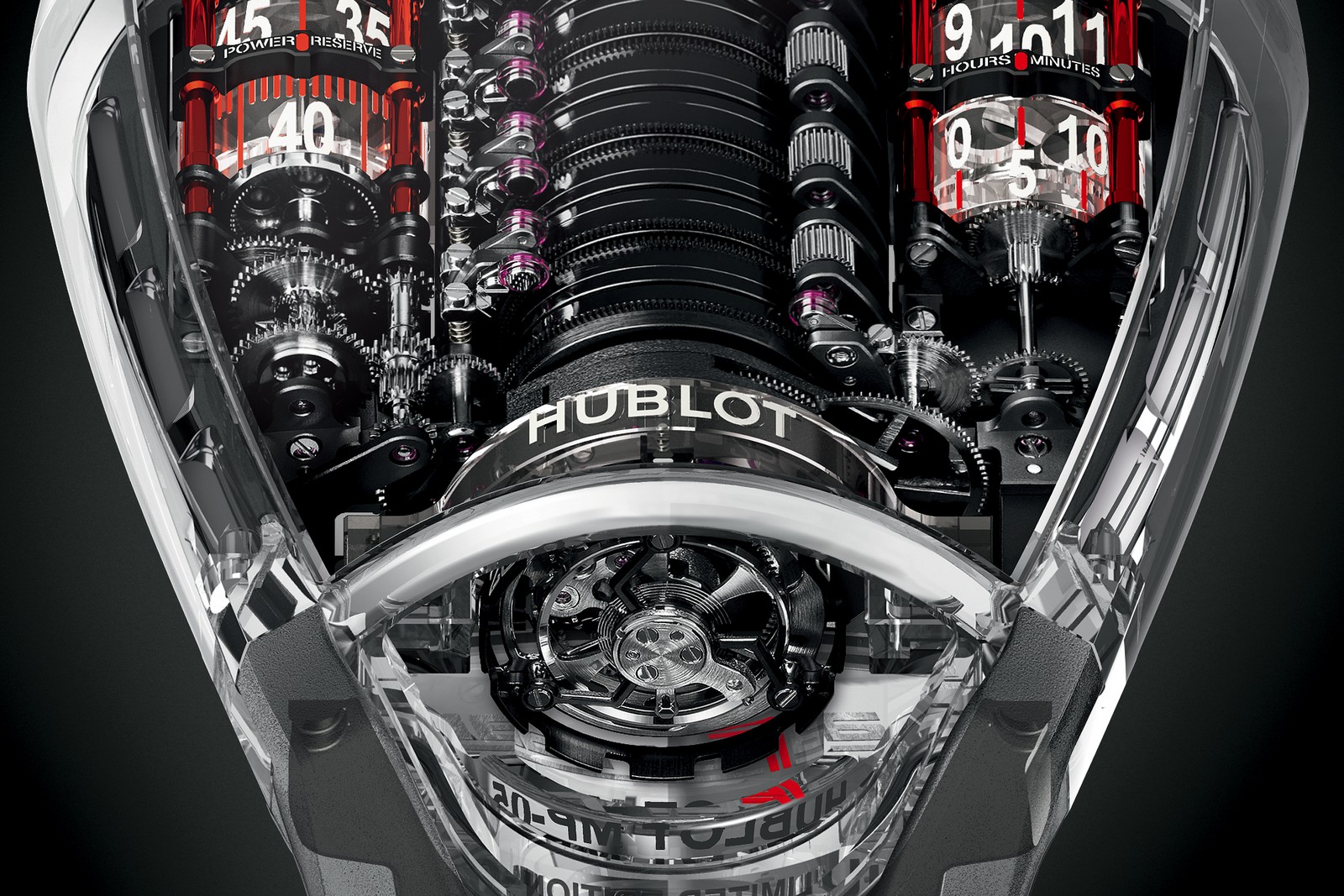 Кога веќе зборуваме за механизмот – да нагласиме дека има 637 компоненти и можност за чување на енергија цели 50 дена (во овој часовник нема батерии). Кога е потребно да се навие часовникот, сопствениците користат минијатурен електричен навивач кој изгледа како алатката која се користи за менување пневматици во Формула 1.