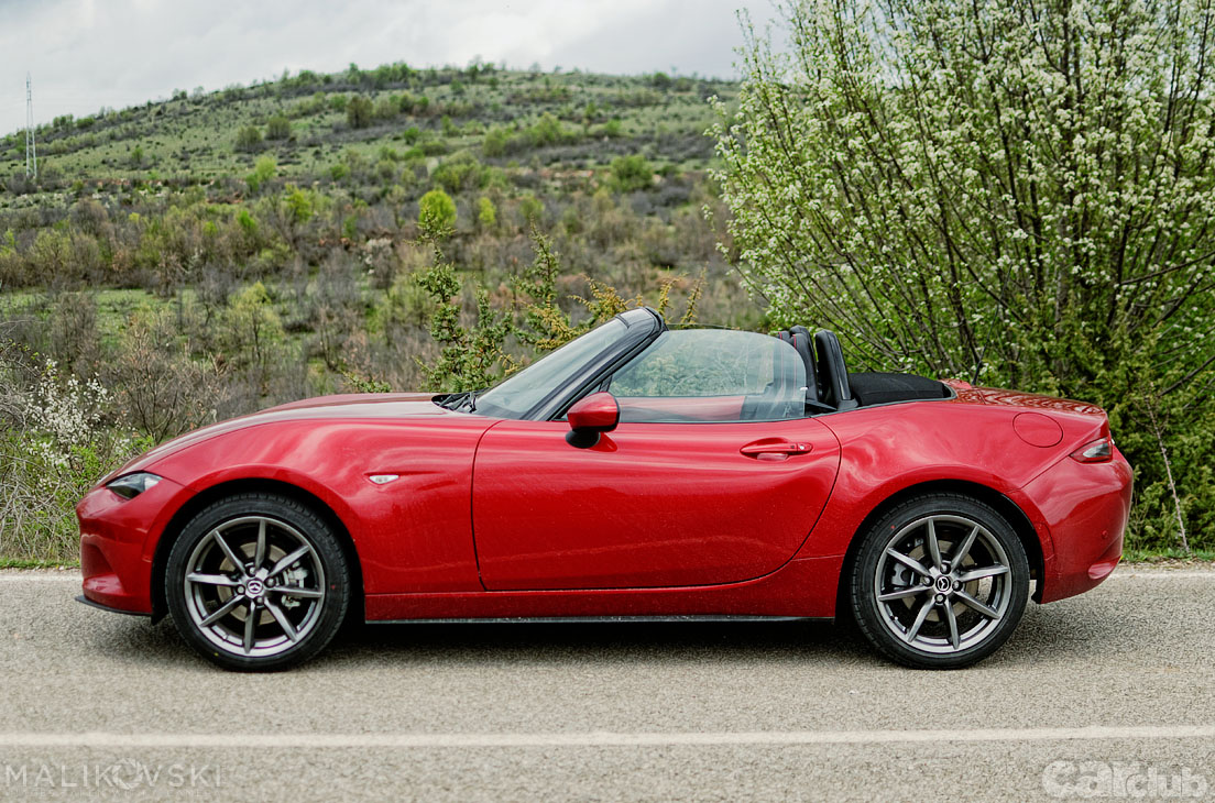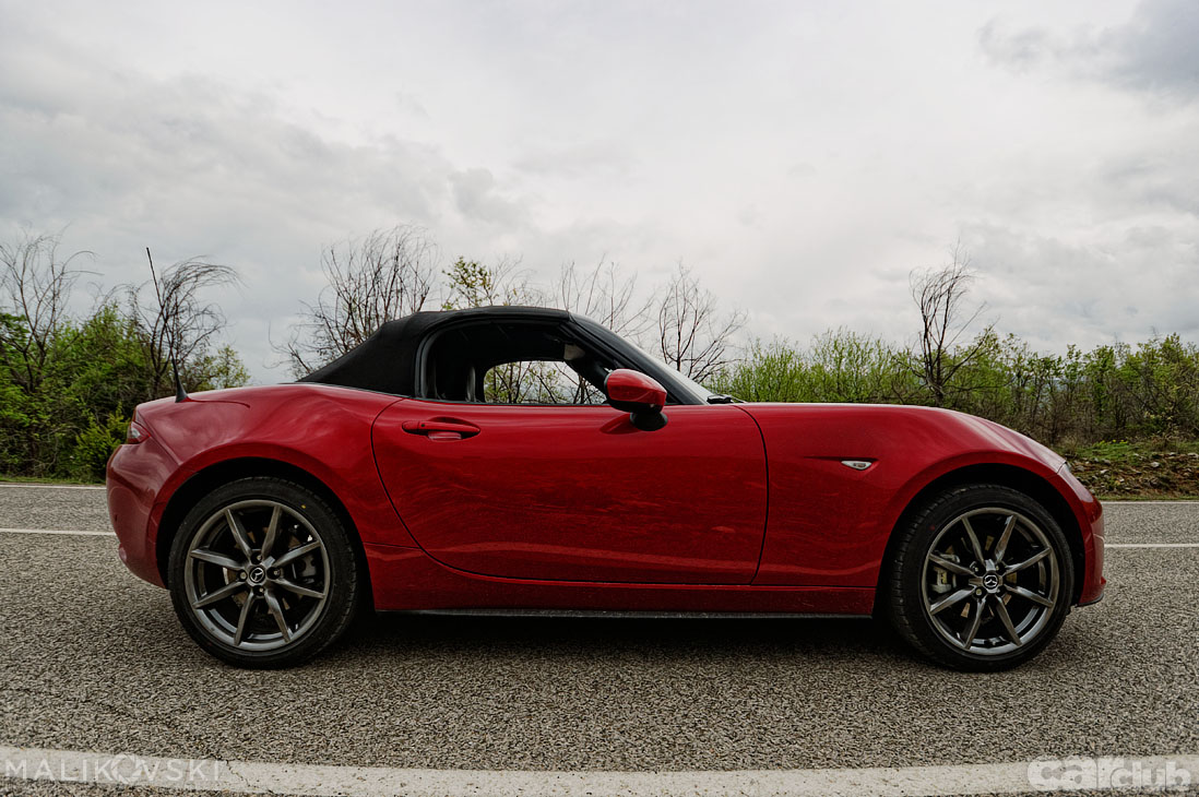 Поминав неколку дена со MX-5 и имав можност одлично да го запознаам малиот јапонски роудстер. Се дружевме и на суво и сончево време, се дружевме и на дожд. Да, во ентериерот е тесно и на повисоките ќе им недостасува малку простор за главата и за нозете. Да, има многу малку места за одлагање ситници (но има практична кутија меѓу двете седишта) и при повисоки брзини на автопат се слуша бучава од ветерот. Но да бидам искрен – сето тоа не е важно. Малата MX-5 троши 10 литри бензин на 100 километри, но нуди илјадници насмевки на истите тие 100 километри, па потрошувачката станува неважна.