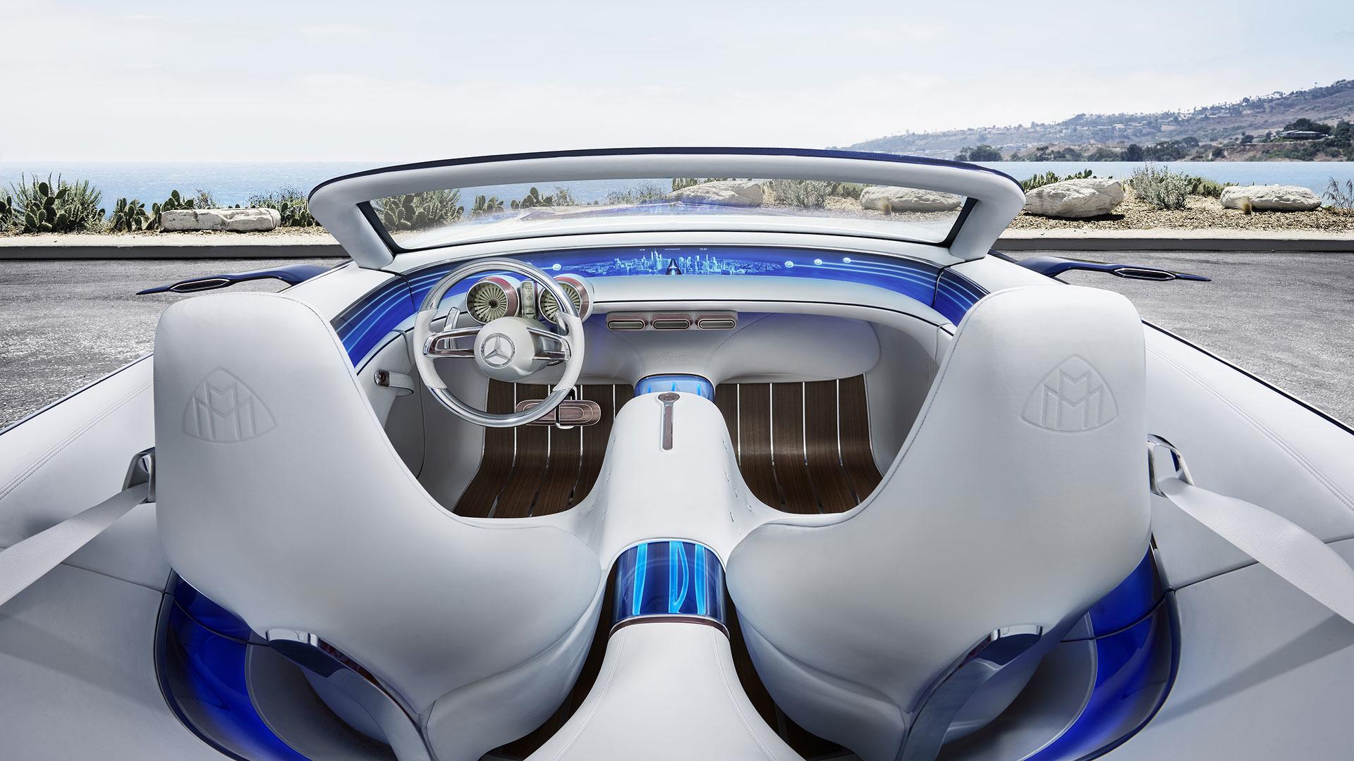 Влезете во кабината, и работите се подеднакво спектакуларни! Vision 6 Cabriolet има само две седишта, а флуидноста е принципот кој е следен при дизајнирање на ентериерот. Навистина ни е тешко да одбереме зборови со кои ќе ја опишеме кабината на овој несекојдневен автомобил – комбинацијата од ретро и модерни елементи е навистина импресивна – според Mercedes-Benz, „дизајнерите одговориле на потребата на луѓето да искусат аналоген луксуз во свет кој станува сè повеќе дигитален.“