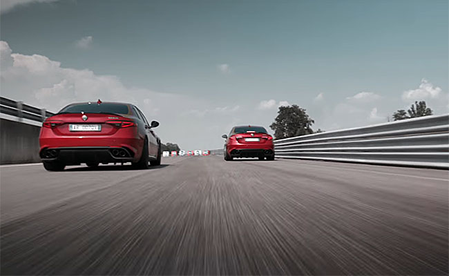 Погледнете како изгледа кога Sebastian Vettel, Kimi Raikkonen и Antonio Giovinazzi ќе седнат зад воланот на три примероци на Giulia Quadrifoglio!