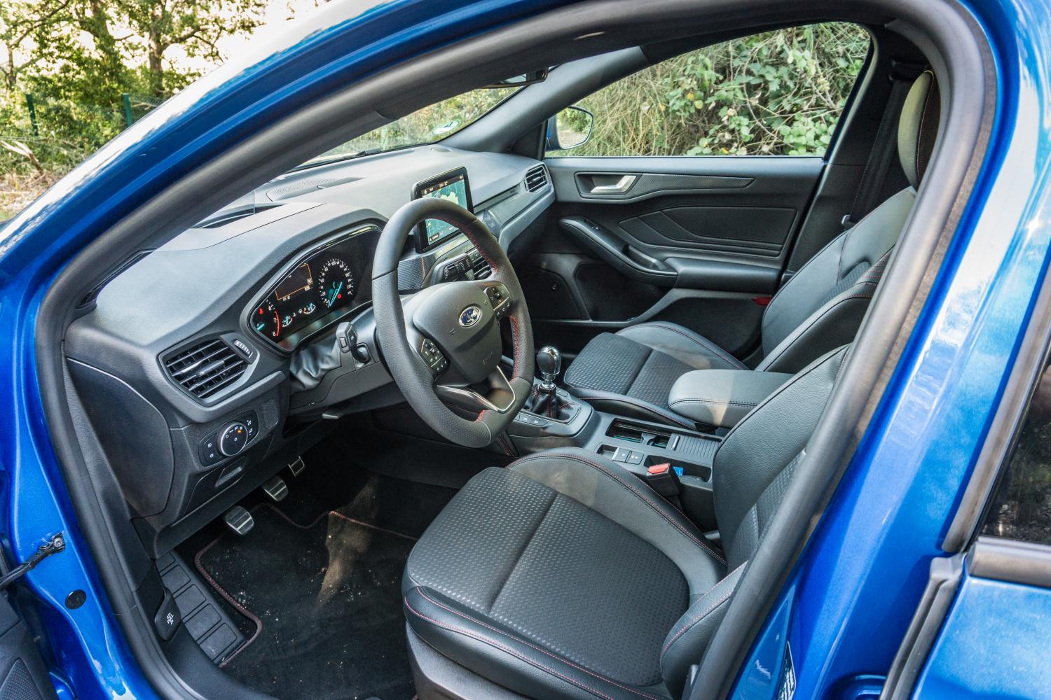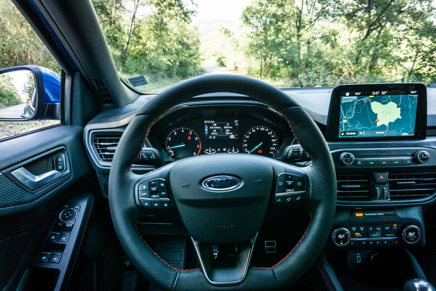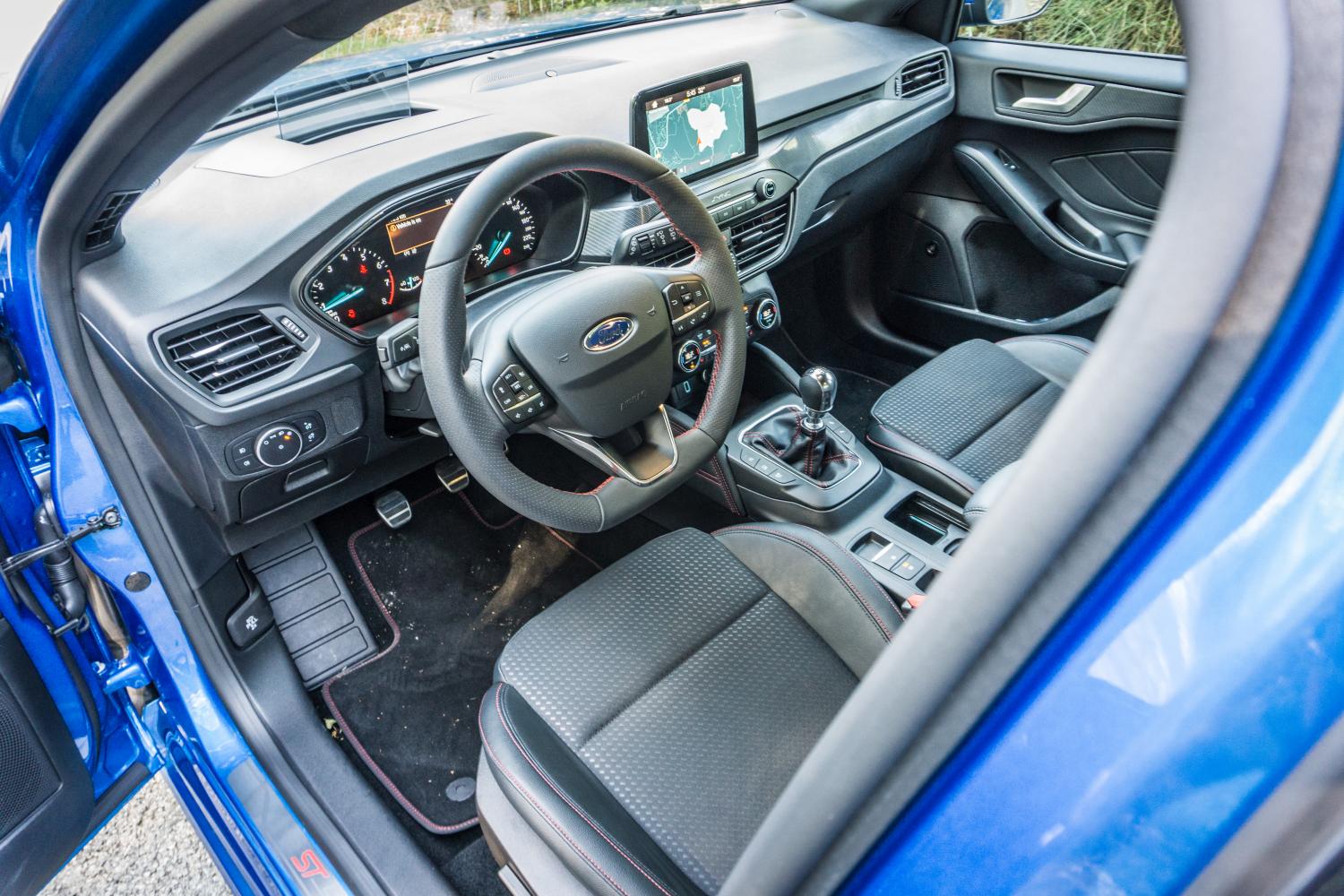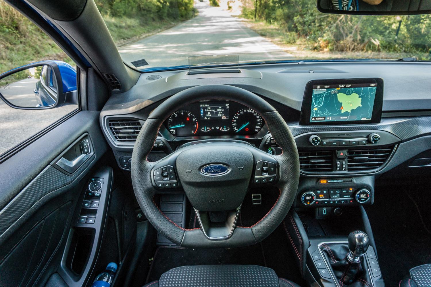 Лесно се наоѓа комфорна возачка позиција а полу-кожните спортски седишта кои доаѓаат сo ST-Line пакетот нудат сосем доволно странична поддршка и изгледаат одлично. Прегледноста е сосем добра, а за оние ситуации кога треба малку помош тука се паркинг сензорите и камерата. Одличен новитет е и Head-Up дисплејот кој за прв пат се нуди во оваа класа, а ќе го пофалиме и новиот SYNC мултимедијален уред кој нуди навигација, Bluetooth поврзување и уште многу функционалности.