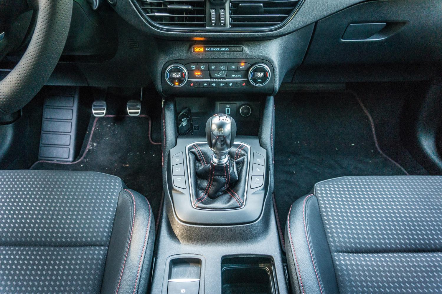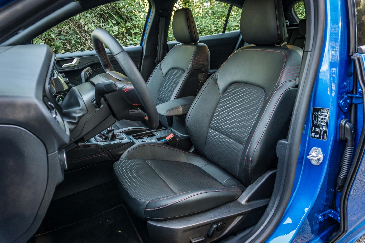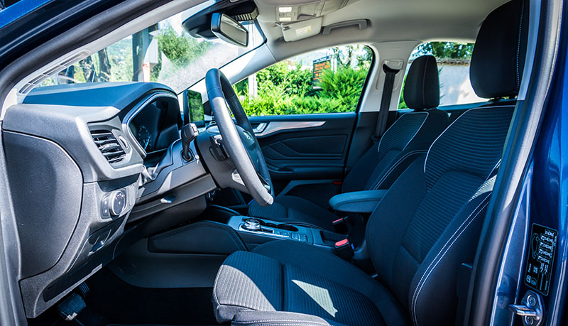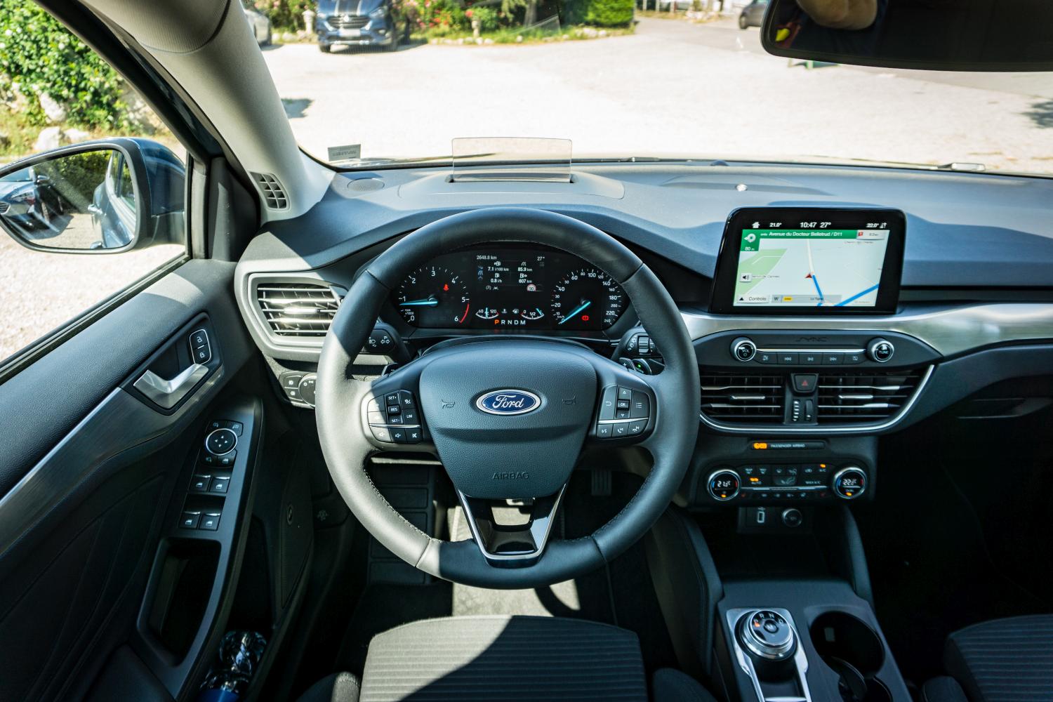 Лесно се наоѓа комфорна возачка позиција а полу-кожните спортски седишта кои доаѓаат сo ST-Line пакетот нудат сосем доволно странична поддршка и изгледаат одлично. Прегледноста е сосем добра, а за оние ситуации кога треба малку помош тука се паркинг сензорите и камерата. Одличен новитет е и Head-Up дисплејот кој за прв пат се нуди во оваа класа, а ќе го пофалиме и новиот SYNC мултимедијален уред кој нуди навигација, Bluetooth поврзување и уште многу функционалности.
