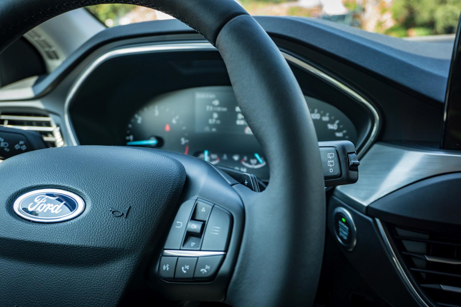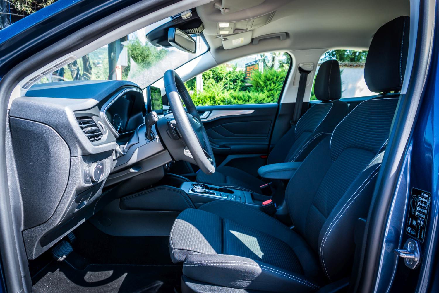 Инженерите и дизајнерите на Ford гордо ни кажуваат дека бројката на физички копчиња е намалена за 30-тина проценти, но сепак оние најважните функционалности (како што се клима уредот и аудио уредот, да речеме) имаат физички контроли. Квалитетот на материјалите е скалило погоре од она што досега го добивавме кај Focus и со задоволство можеме да кажеме дека сега кабината на германскиот хечбек е меѓу најдобрите во класата.