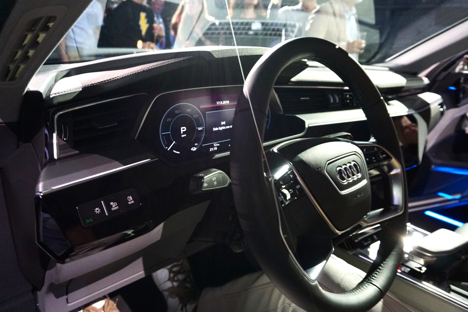 Кабината е меѓу најмодерните кои сме ги виделе и сите дизајнерски одлуки се донесени во насока на функционалноста. Централната конзола е хај тек, а централниот гребен меѓу возачот е совозачот е отворен па се овозможува лесен пристап до сите ситници кои би можеле да ги оставите во него. Луѓето од Audi го опишуваат e-tron како SUV во кој комфорно ќе собере вкупно петмина, и по тоа што можевме да го видиме воопшто немаме причина да се сомневаме во тоа.