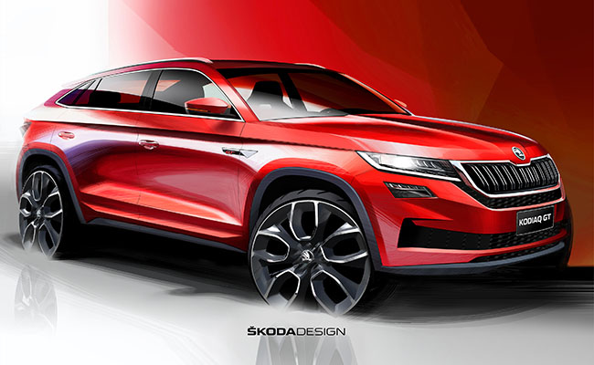 Чешкиот бренд ги објави првите скици и првите детали од купе-SUV изведбата на големиот Kodiaq. Профилот е сличен на оној на Kodiaq, со очигледната разлика во задниот дел, каде опаѓачката кровна линија сугерира купеовска форма.