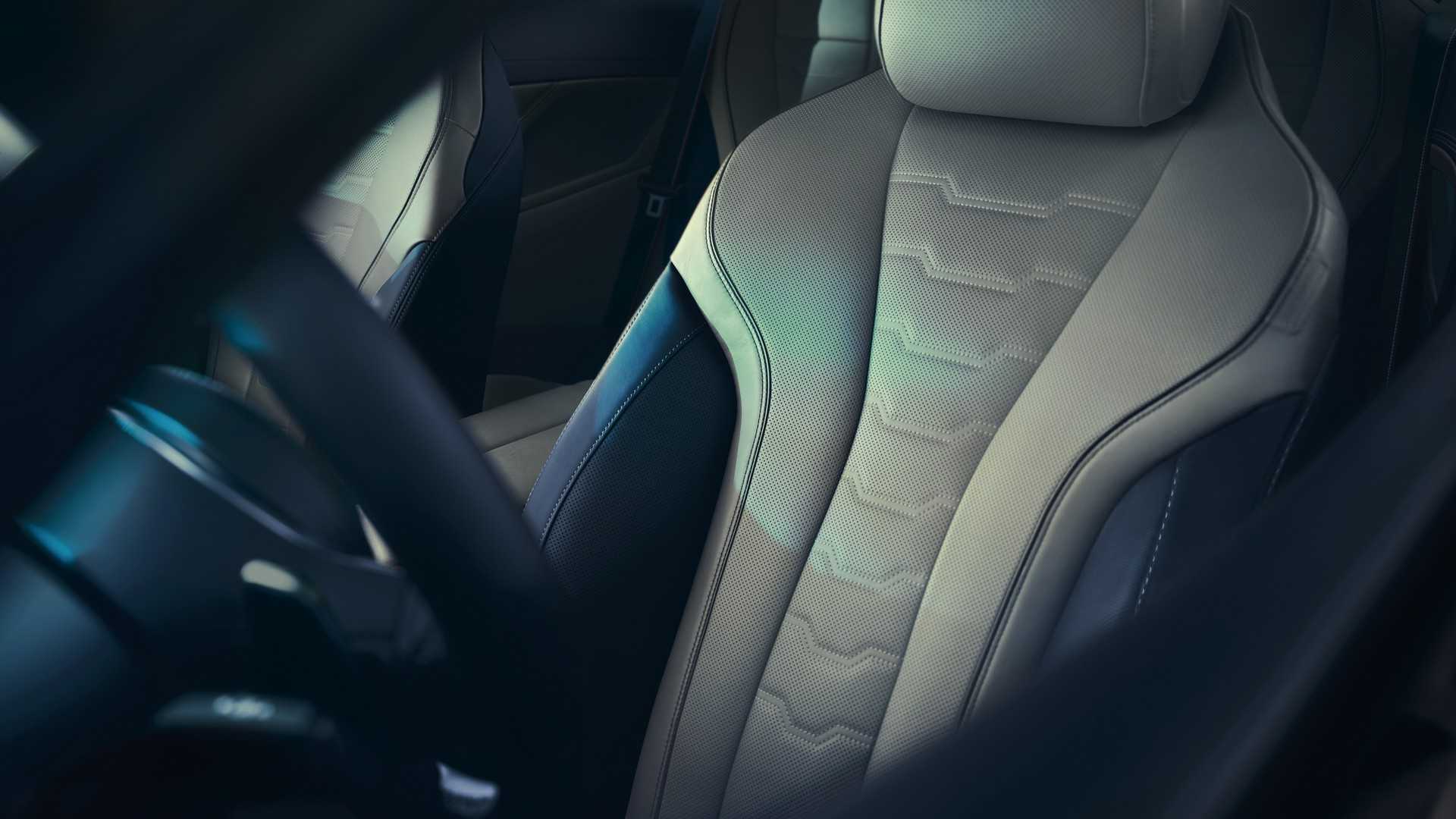 Аудио системот е дело на Bowers&Wilkins, а премиум чувството го комплетираат сјајни црни пластики низ целиот ентериер и додатоци од стакло на копчињата со кои патниците најчесто се во контакт.