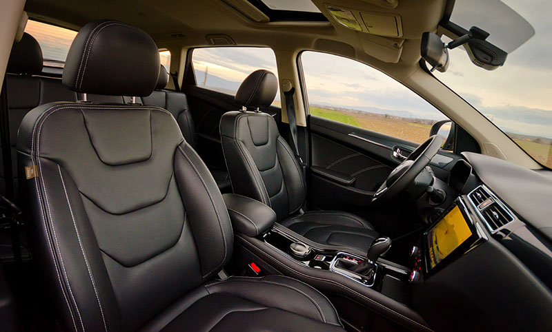 Слична приказна за дарежливост се провлекува низ целата кабина, бидејќи добиваме навистина многу – кожни седишта, автоматски менувач, сончев кров, делумно дигитални инструменти, автоматски клима уред, сензори и камери за паркирање, автоматски CVT менувач, огромен, 10-инчен мултимедијален уред, DVR камера која го снима вашето возење, стартување на копче и уште многу, многу, многу повеќе. Најсилната страна на кинеските брендови – bang-for-buck аспектот на нештата – е цврсто на страната на Glory 580.