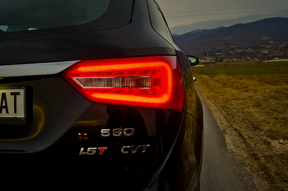 Комбинацијата од 1.5-литарски турбо-бензинец со 150 коњски сили и CVT менувач е интересна – моќта е генерално достапна кога и да притиснете на педалата за гас без некое посебно колебање. Ќе го препознаете оној карактеристичниот звук на CVT менувачот и ќе добиете прифатливи перформанси. Потрошувачката во град е околу 10-11 литри бензин на 100 изминати километри, но со оглед на комбинацијата на моторот и менувачот, како и габаритот на Glory 580, тоа и не е страшно.