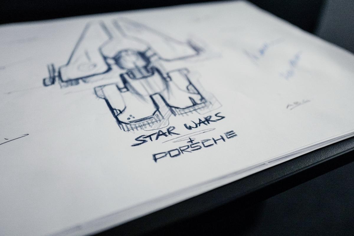 „Со овој проект ги обединуваме двата светови – егзотичниот филмски дизајн на галаксијата далеку, далеку, со прецизната работа која е потребна за да се развие емотивен, Porsche спортски автомобил“ – изјави Doug Chiang, потпретседател и главен креативен директор во Lucasfilm, и додаде дека „оваа колаборација ветува интовативен дизајн кој ќе ги обедени двата брендови за да се креира возбудлив нов вселенски брод достоен за Porsche и Star Wars.“