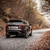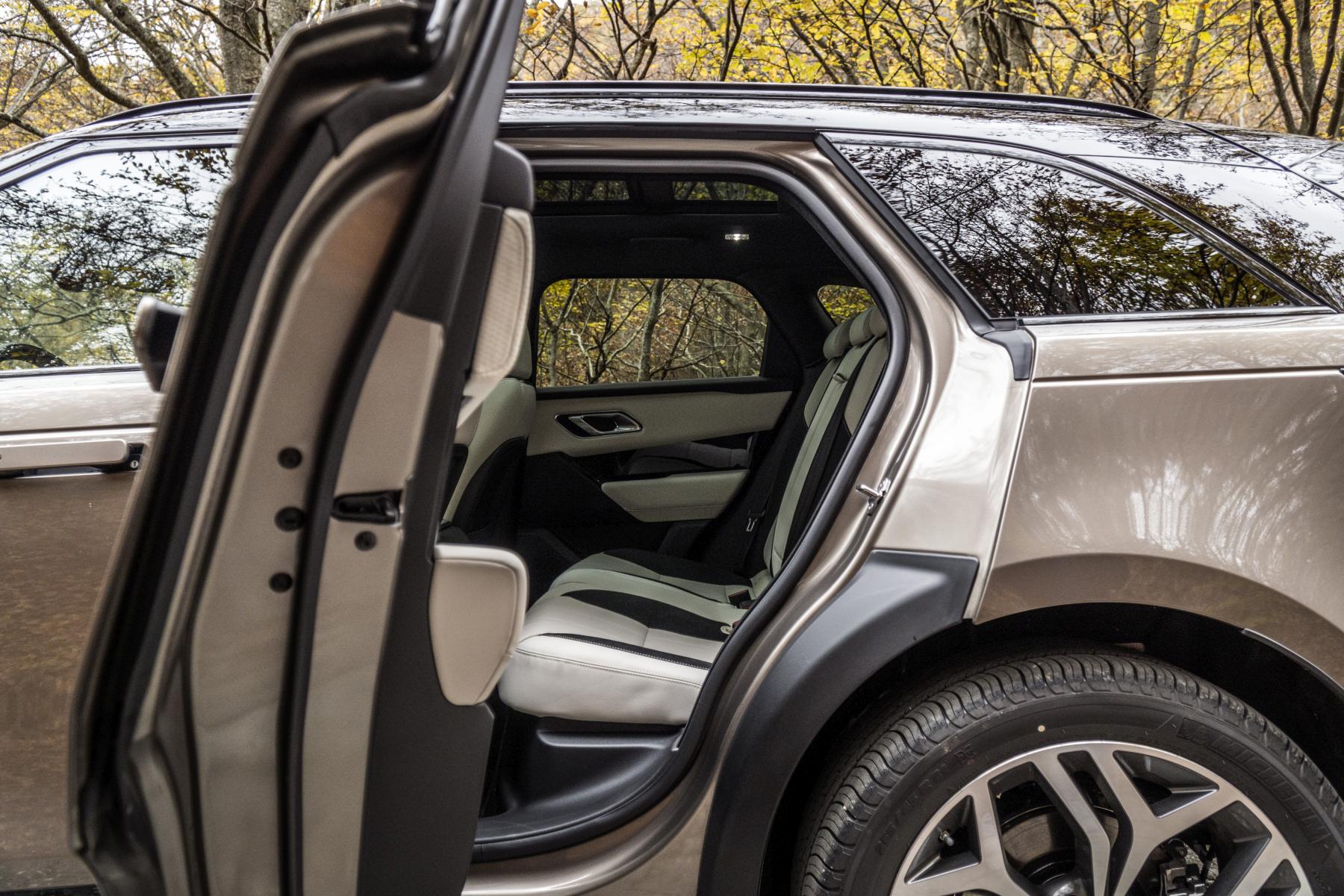 Страничната линија е чиста и рамна, со карактерна линија која се провлекува од предните до задните светла и успева визуелно да го направи Velar понизок – иако не е. Задните светла се спојуваат во едноделна целина и малку наликуваат на некаква маска, а сликата за динамичност ја комплетира дискретниот заден спојлер. Дополнително – двобојната комбинација со црни страници и црн кров одлично ја заокружува идејата за луксузен SUV. Конечно – да завршиме со голееемите тркала – Velar е толку голем, што дури и 21-инчните тркала не изгледаат преголеми. Полн погодок.