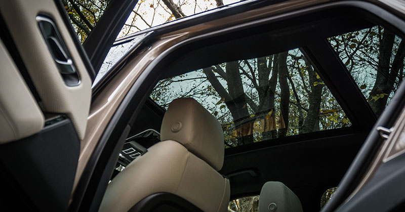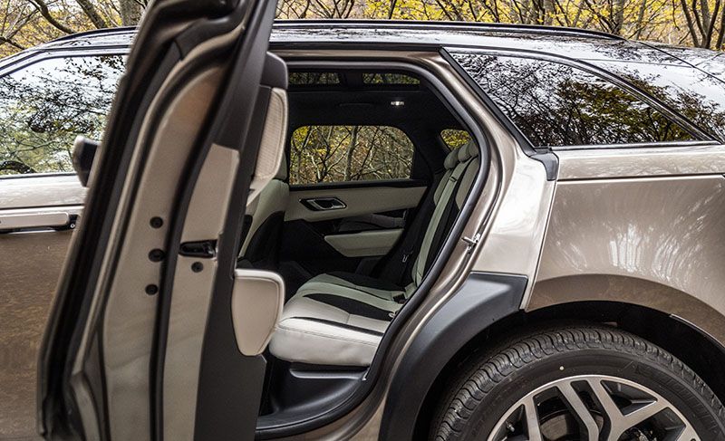 Слично е и на задната клупа. Има мноооогу простор – дури и за тројца ако има потреба, но малку ќе смета тунелот за преносот кон задните тркала. Се гледа дека Velar е замислен за поминување подолги рути – задната клупа е идеално-комфорна и тешко е да се најде забелешка. Секако, огромна улога игра и огромниот панорамски стаклен кров кој дозволува многу, многу светлина да влезе во кабината.