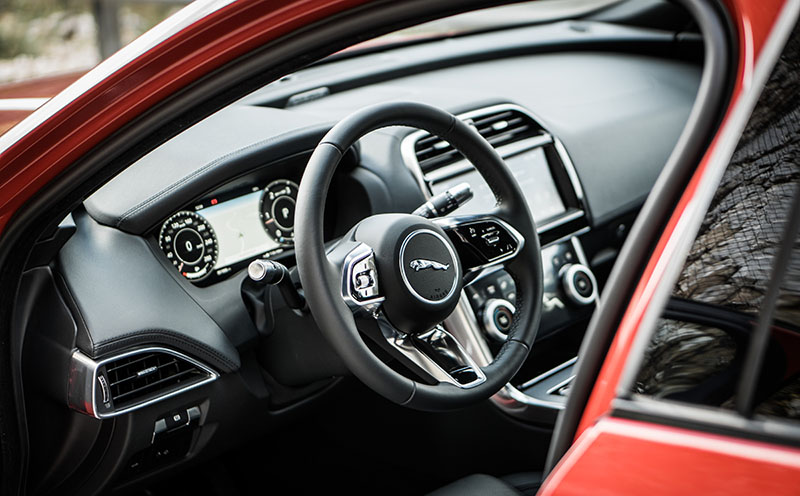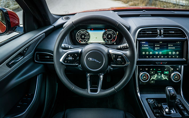 Значително потемелно е освежувањето во ентериерот на XE. Кабината на XE добива нови, редизајнирани дигитални инструменти, како и нов управувач и нова централна конзола. Се спуштаме во возачкото седиште и пред нас се јасни и прилагодливи дигитални инструменти кои ја менуваат графиката во зависност од одбраниот режим на возење. На централната конзола добиваме темелно-преработен мултимедијален уред кој е значително пореспонзивен од оној кој досега се вградуваше во XE.