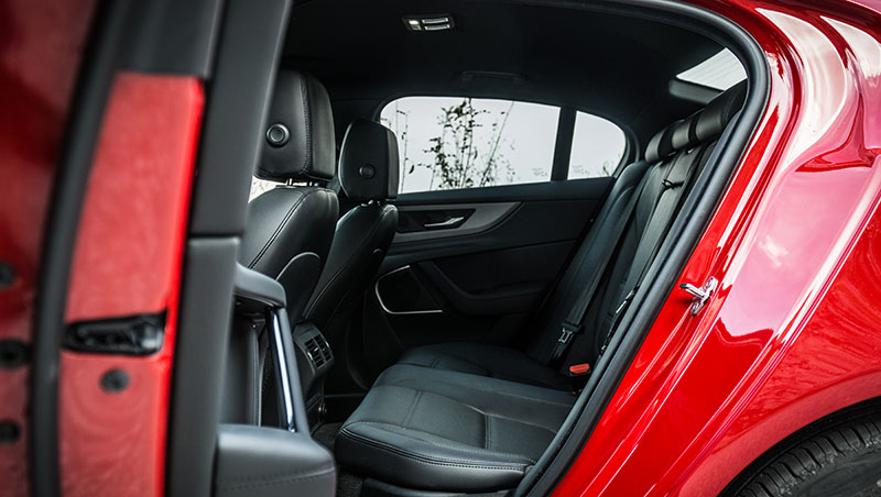 Инаку – сосем доволно простор за двајца има и на задната клупа. Да, Jaguar XE е еден од најкомпактните модели во класата, но да не се лажеме – тука има повеќе од доволно простор за потребите на корисниците на ваков автомобил. Ни се допаѓа дека и седиштата на задната клупа се длабоки и профилирани – па се комфорни и при возење и кон подалечни дестинации.