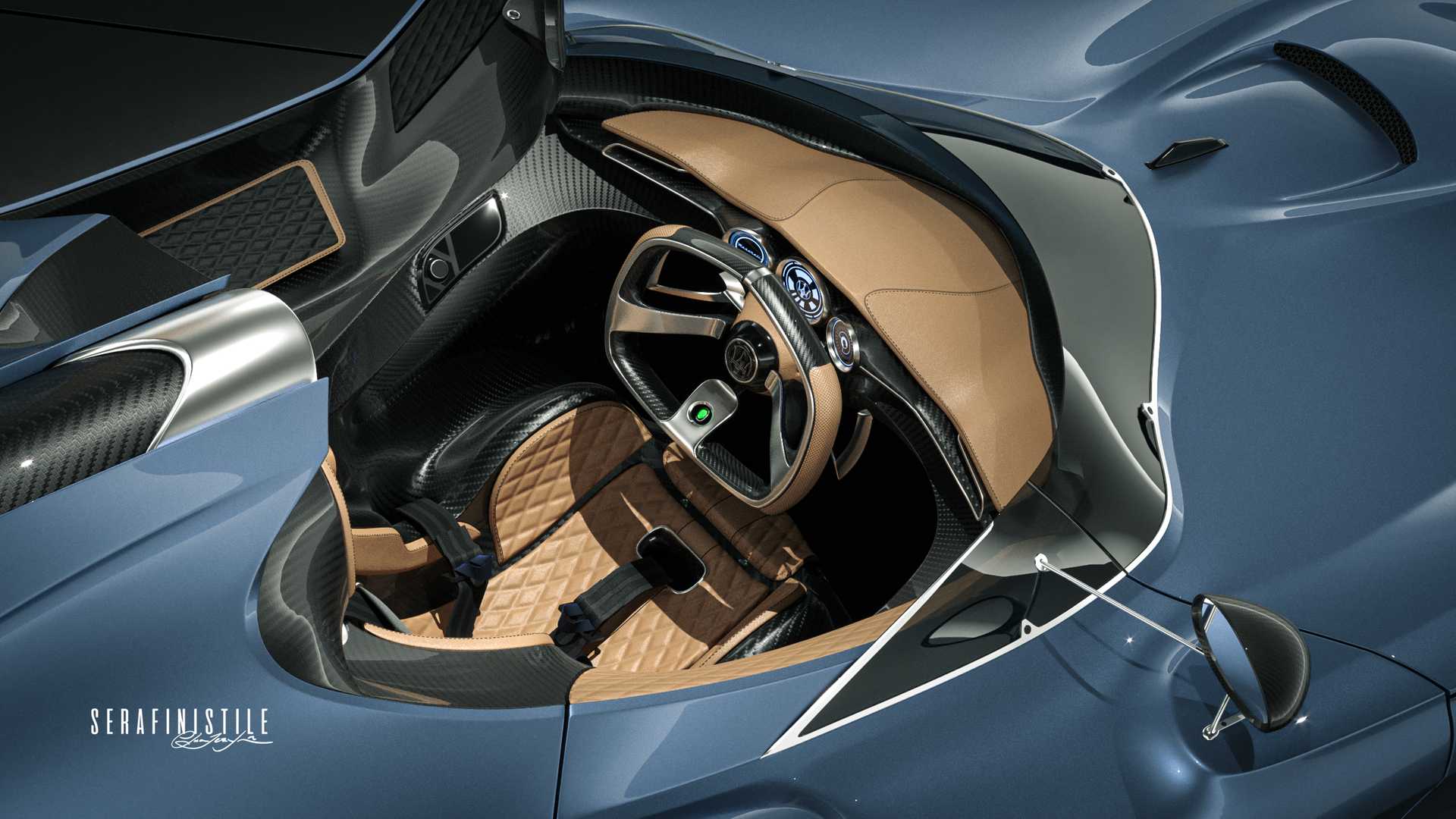 Ентериерот е детално издизајниран со примена на кожни беж материјали и елементи од карбон. Целата кабина е ориентирана кон возачот, чие седиште е единствено и е поставено во средината за најдобра распределба на тежината. Дигиталните дисплеи зафаќаат мала површина и се сместени во кружни форми, како кај автомобилите од минатото, додека воланот е во форма на петоаголник со центар вовлечен кон внатре и копче за палење на моторот на него.