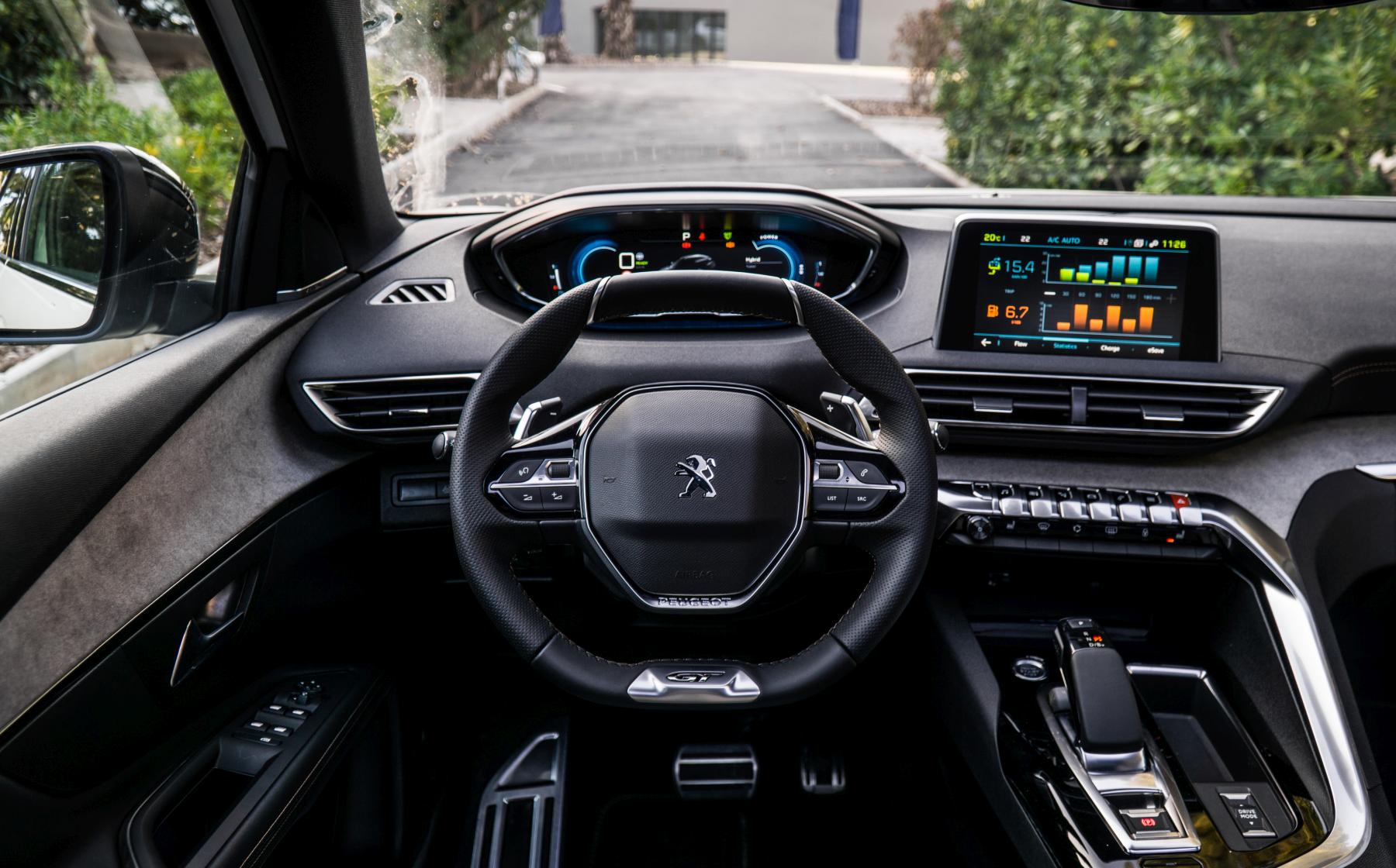 И некако, можеби чудно – но токму тука 3008 Hybrid4 ги покажува своите таленти. Формата и габаритот на 3008 дозволуваат вградување на два електромотори – па големиот SUV комбинира 1.6-литарски турбо-бензинец кој испорачува 180 коњски сили, со два електромотори – едниот поврзан на предните тркала, другиот на задните. Предниот испорачува 110 коњски сили, задниот дополнителни 112 коњски сили, а вкупната системска моќност е 300 коњски сили и 520 Nm вртежен момент – како и супер-напреден погон на сите четири тркала.
