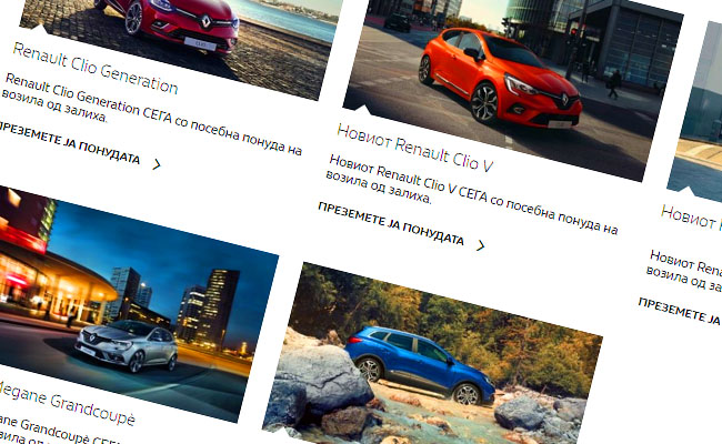 Повеќе за понудите можете да дознаете за секој модел засебно, односно на веб-страницата на Renault. Сите модели можете да ги погледнете во продажниот салон на Renault во Скопје.