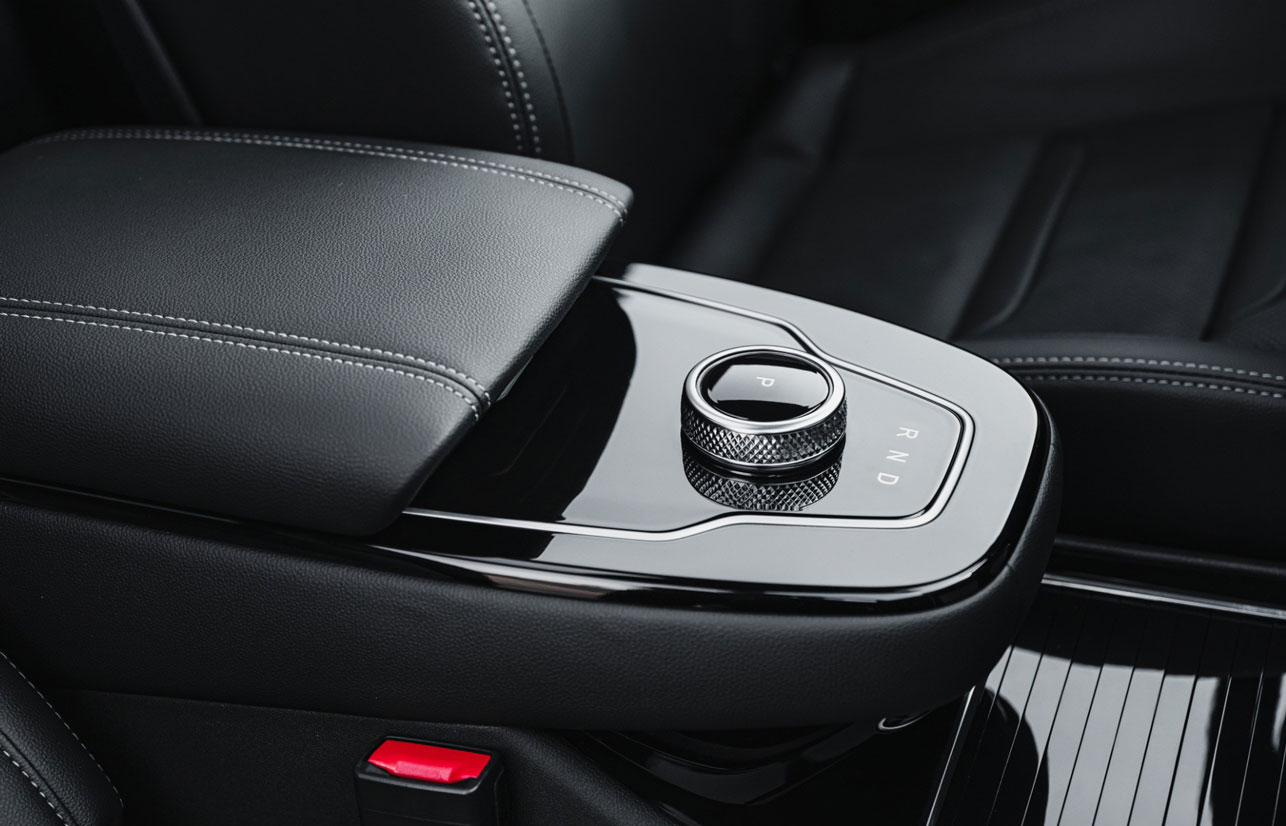 Во кабината се забележува дигитален инструмент панел позади воланот со два краци. Тука се и површини од дрво, металик детали и ротационен преносник на степени. Другите погодности вклучуваат амбиентално осветлување, ѕвездено небо, предни седишта со греење и масажери.
