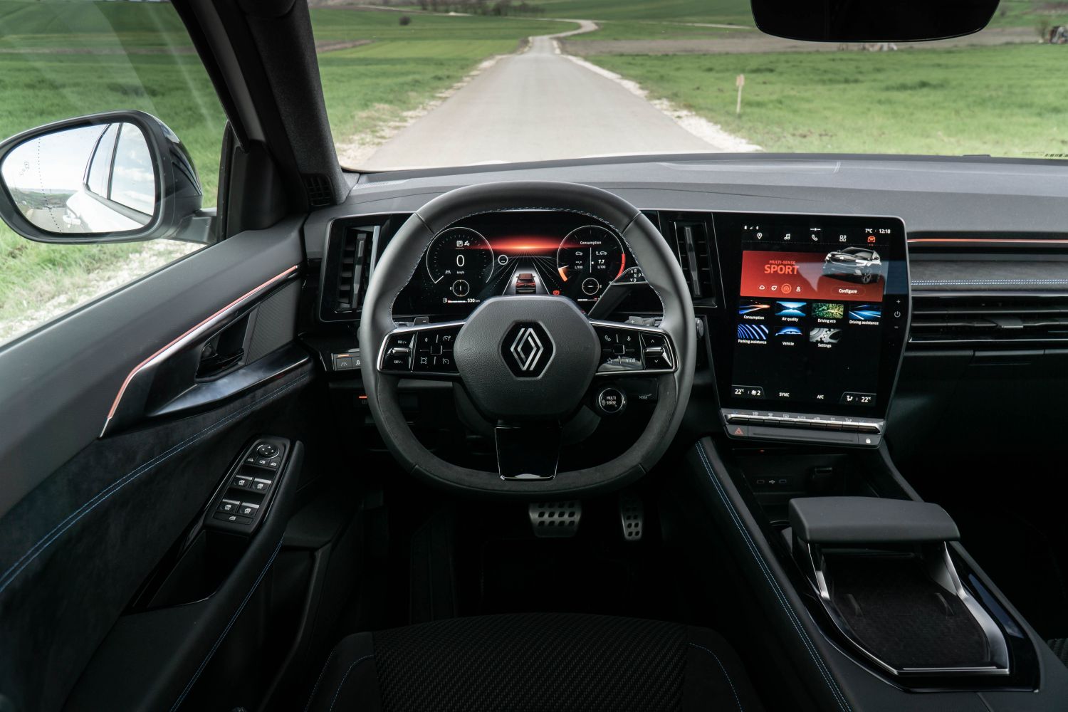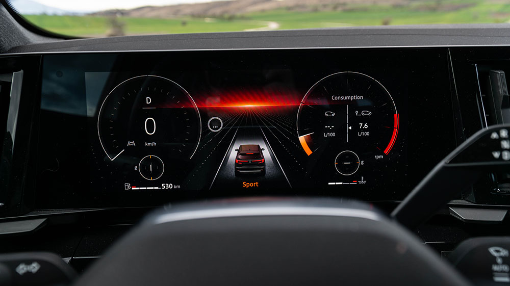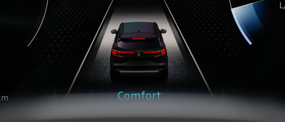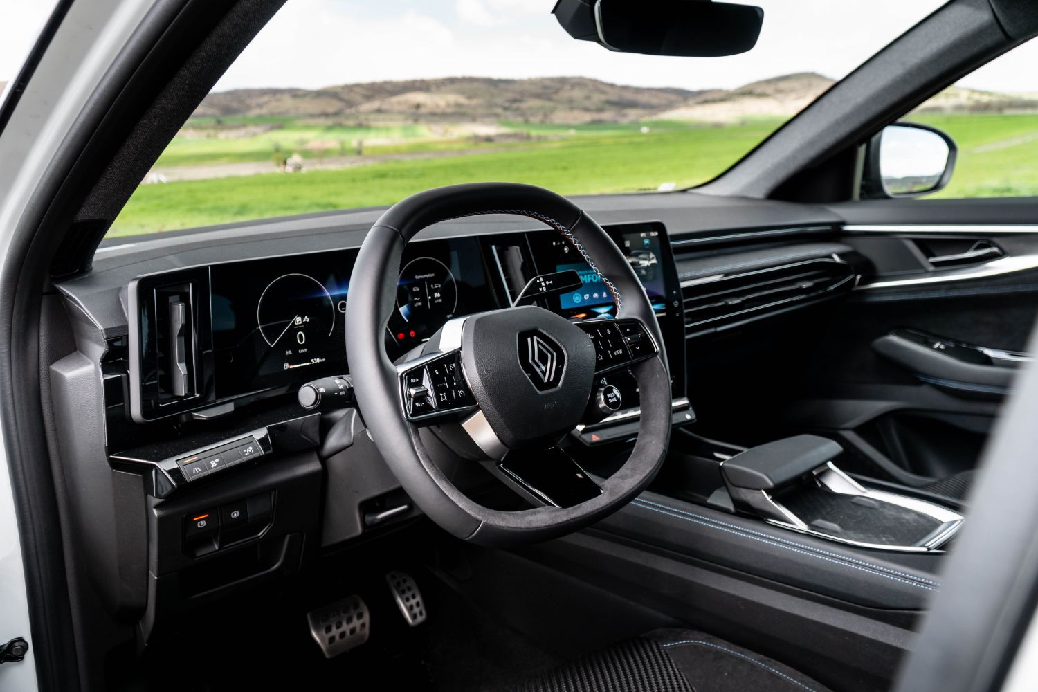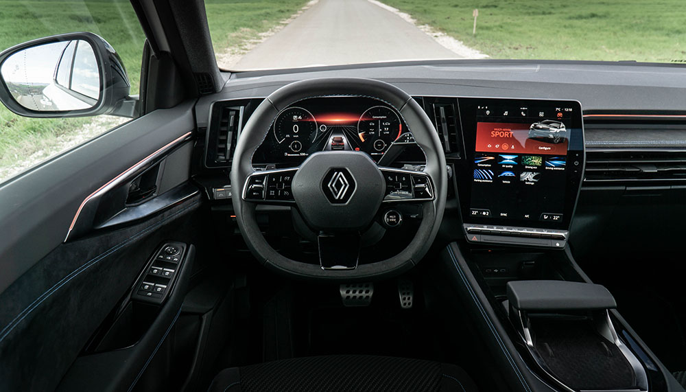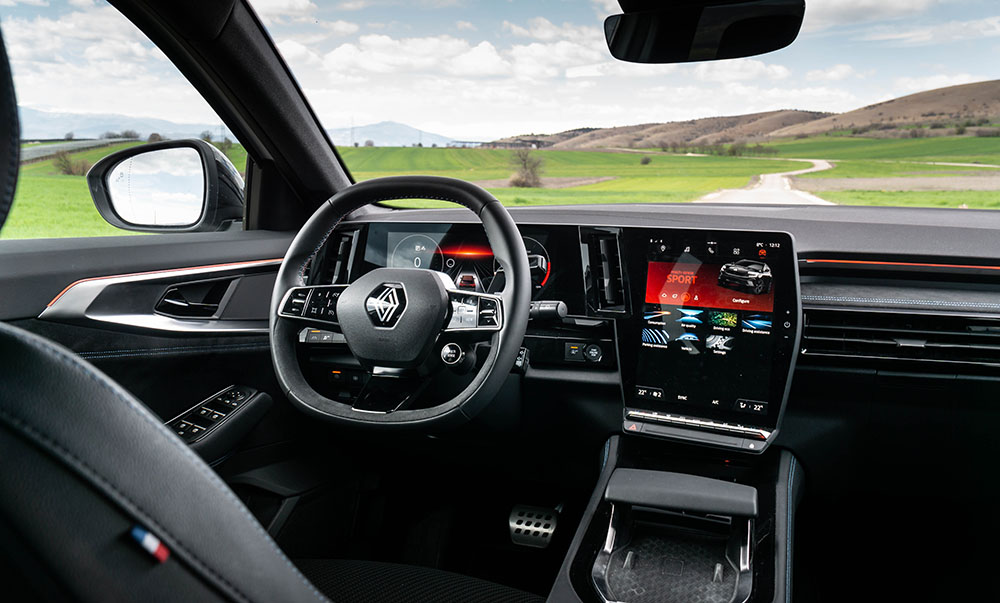 Одиме внатре. Ја отвораме возачката врата и нè пречекува целосно-нова кабина која дебитираше кај електричниот Megane E-Tech, но всушност е развиена првично токму за Austral. Комбинацијата од 12.3-инчен дисплеј наменет за возачот и вертикално-поставен 12-инчен дисплеј наменет за инфозабавниот уред и навигацијата е интересна и несекојдневна. Стартувањето е (нормално) на копче, а на управувачот е поставен селекторот за режими на возење.