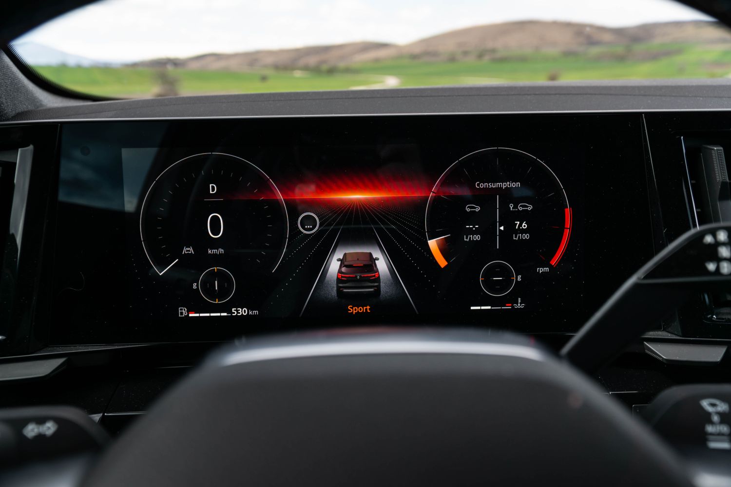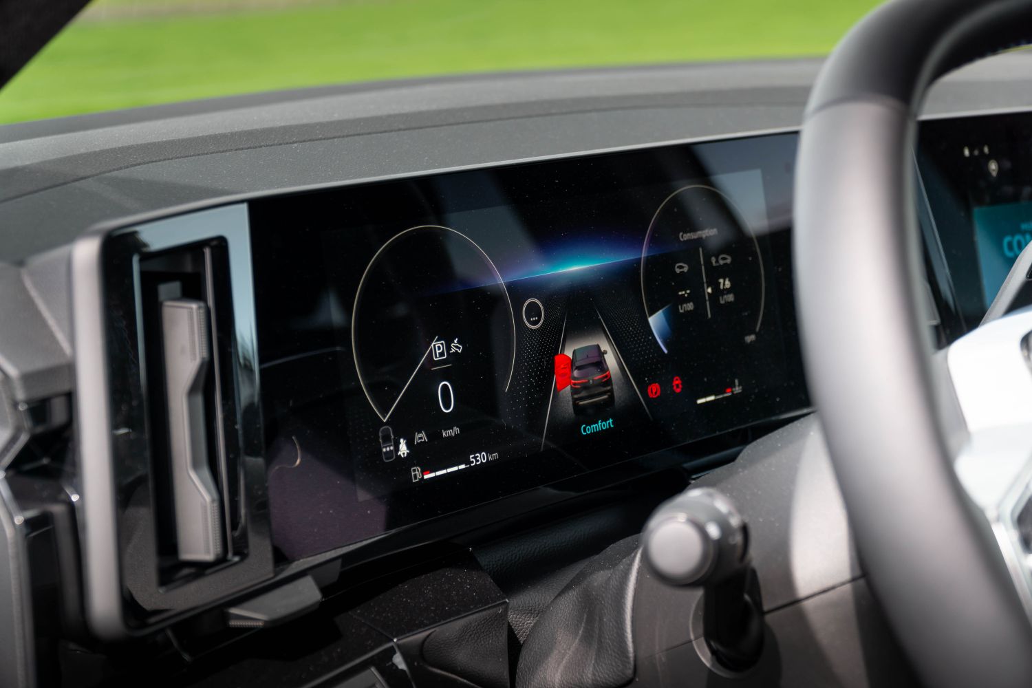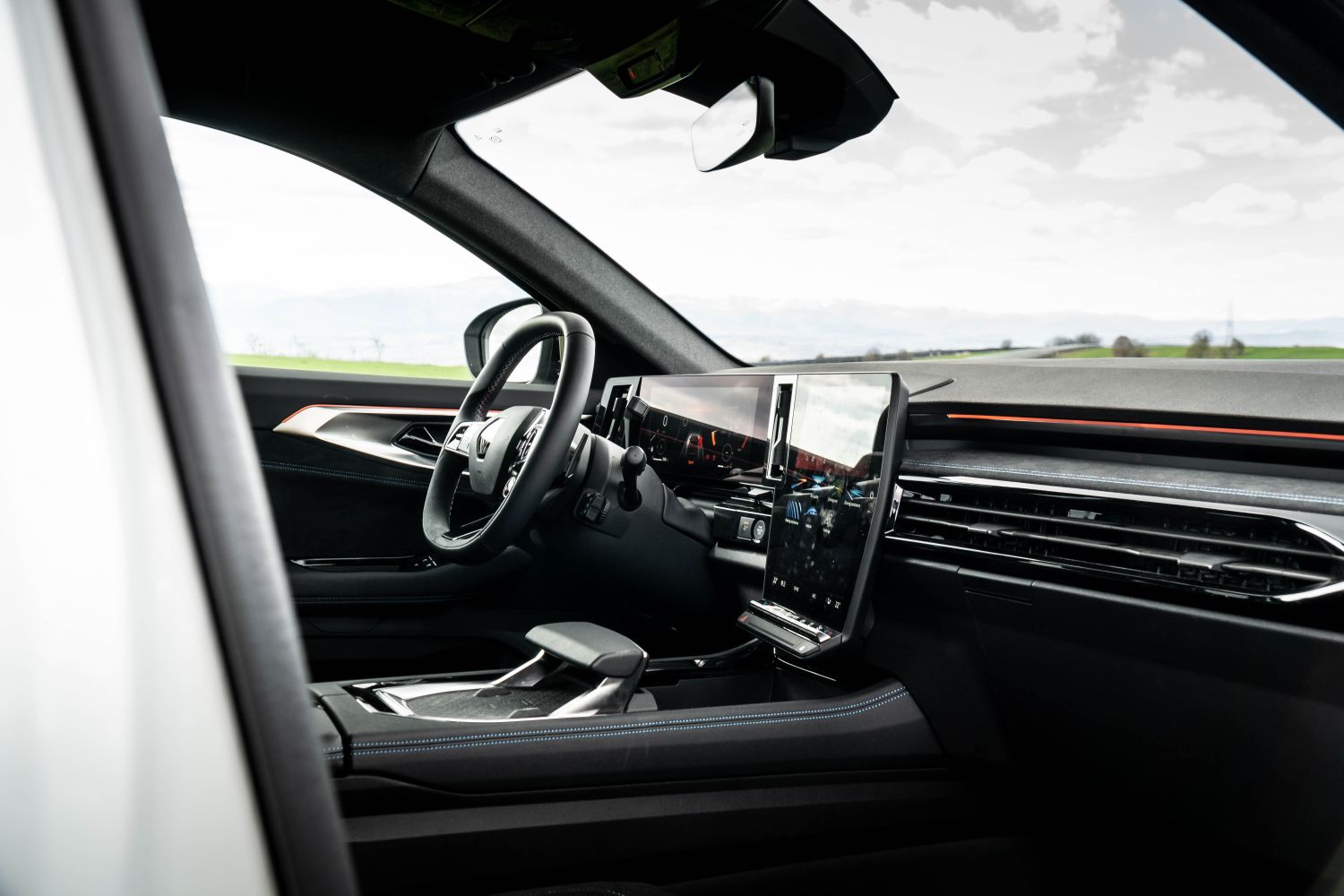 Одиме внатре. Ја отвораме возачката врата и нè пречекува целосно-нова кабина која дебитираше кај електричниот Megane E-Tech, но всушност е развиена првично токму за Austral. Комбинацијата од 12.3-инчен дисплеј наменет за возачот и вертикално-поставен 12-инчен дисплеј наменет за инфозабавниот уред и навигацијата е интересна и несекојдневна. Стартувањето е (нормално) на копче, а на управувачот е поставен селекторот за режими на возење.