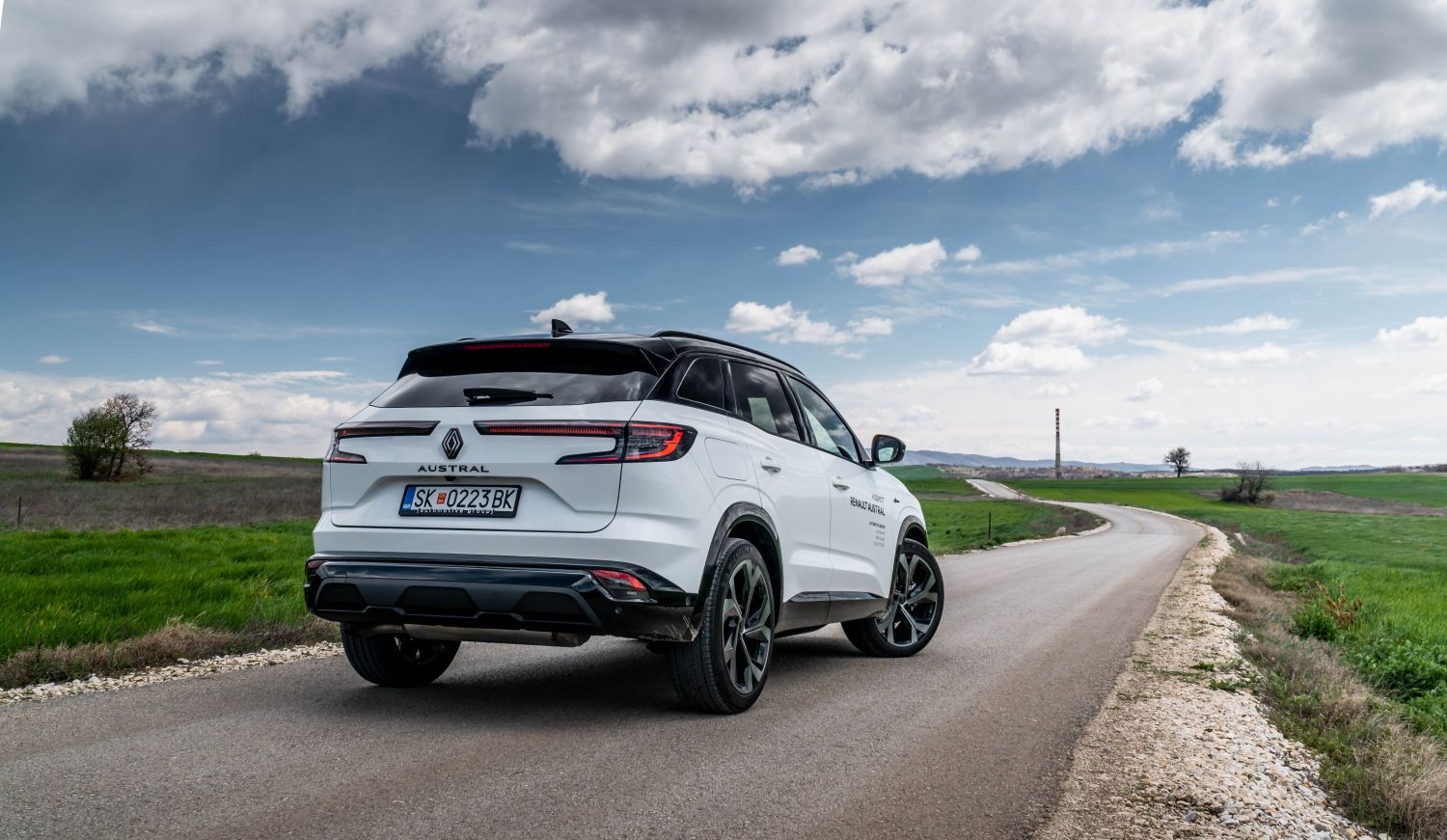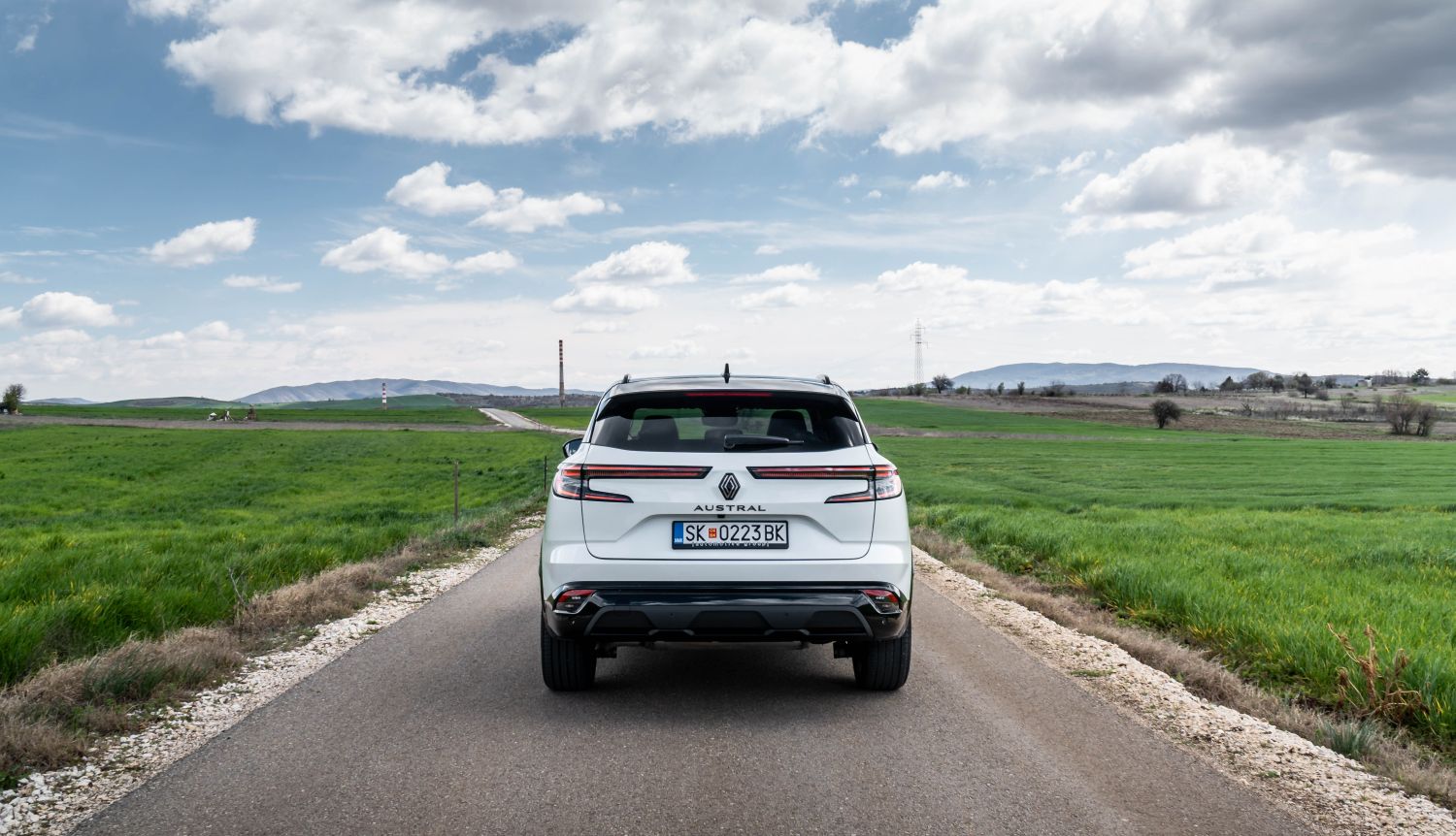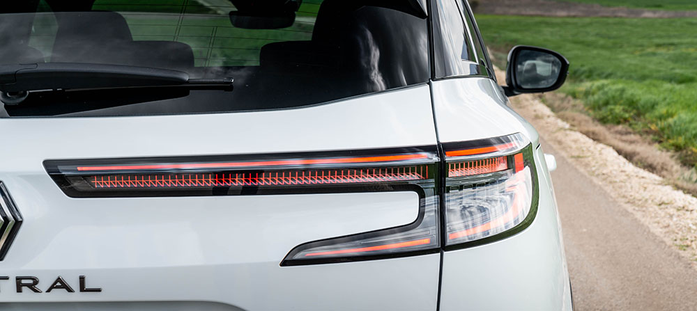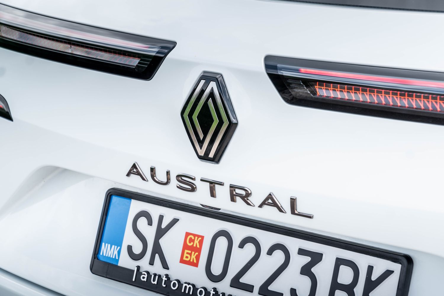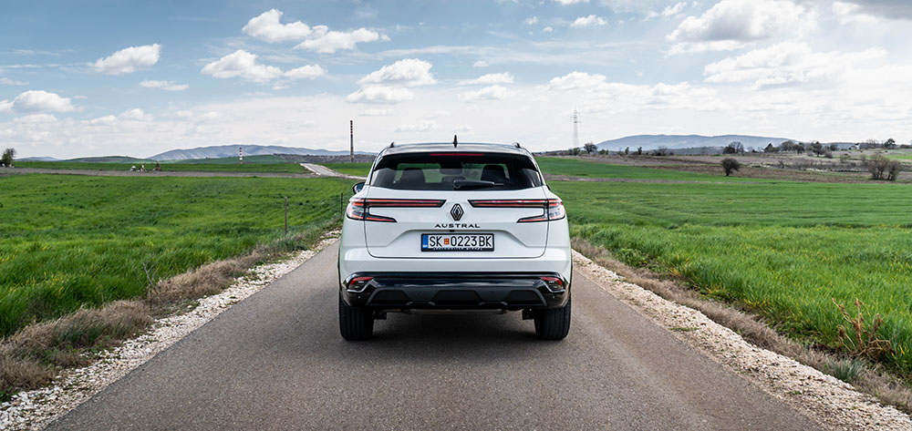 Кога сме кај задниот дел, веднаш ќе ги споменеме широките светлосни елементи. Едноставно – полно погодок. Всушност, целиот заден дел на Austral е интересен, со широки површини и детали кои ја нагласуваат Alpine филозофијата на моделот. Меѓу светлата се поставен знакот на Renault и ознаката Austral, а во длабокиот браник е интегриран „дифузер“ изработен од мат-црна пластика.