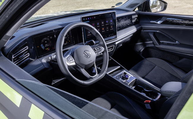 Покрај погонските опции, Volkswagen ни го откри и ентериерот на новиот Tiguan. Да, фотографиите се од пред-продукциски прототип – но тоа е тоа. Во кабината главното внимание оди кон 15-инчниот екран за инфозабавниот уред, но од Volkswagen напоменуваат дека фидбек од корисниците е користен при развивање на новиот оперативен систем. Инфозабавниот уред може да се контролира и преку „тркалце“ поставено на централната конзола меѓу возачот и совозачот. Забележуваме и дека на управувачот има нормални, физички копчиња, но и дека рачката за менувачот е поставена зад управувачот а не меѓу возачот и совозачот.