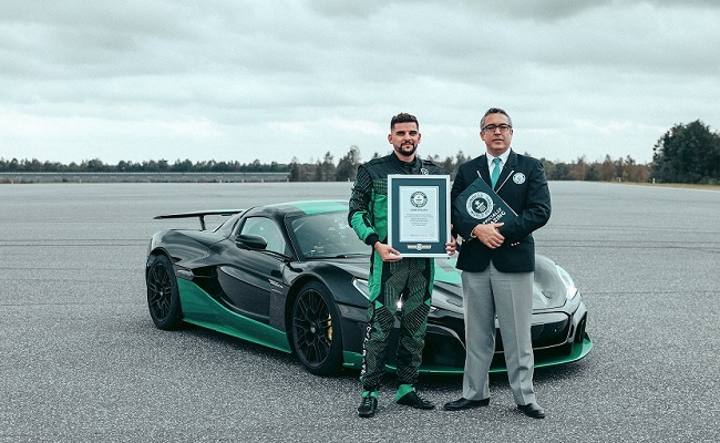 Сведочена од Гинисовата книга на рекорди и потврдена со помош на податоците измерени од Dewesoft, Nevera сега официјално ја држи титулата Гинисов светски рекорд за постигната најголема брзина во возење наназад.