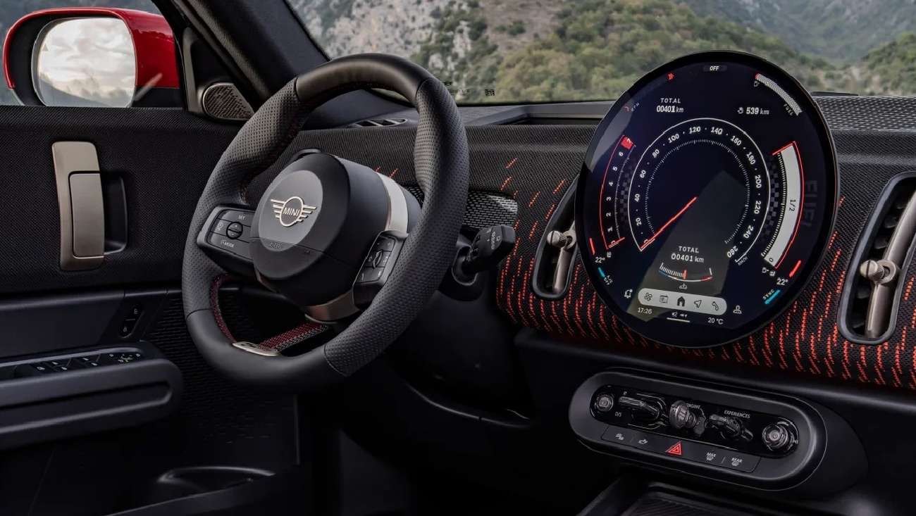Внатрешноста исто така покажува неколку знаци на понудените дополнителни перформанси. Спортските седишта се обложени во црна боја, со црвени шевови и JCW амблеми. Countryman JCW добива централен екран на допир од 9,4 инчи, надграден звучен систем, адаптивна контрола на возење и нов сет на режими на возење вклучувајќи го спортскиот „GO-KART“.