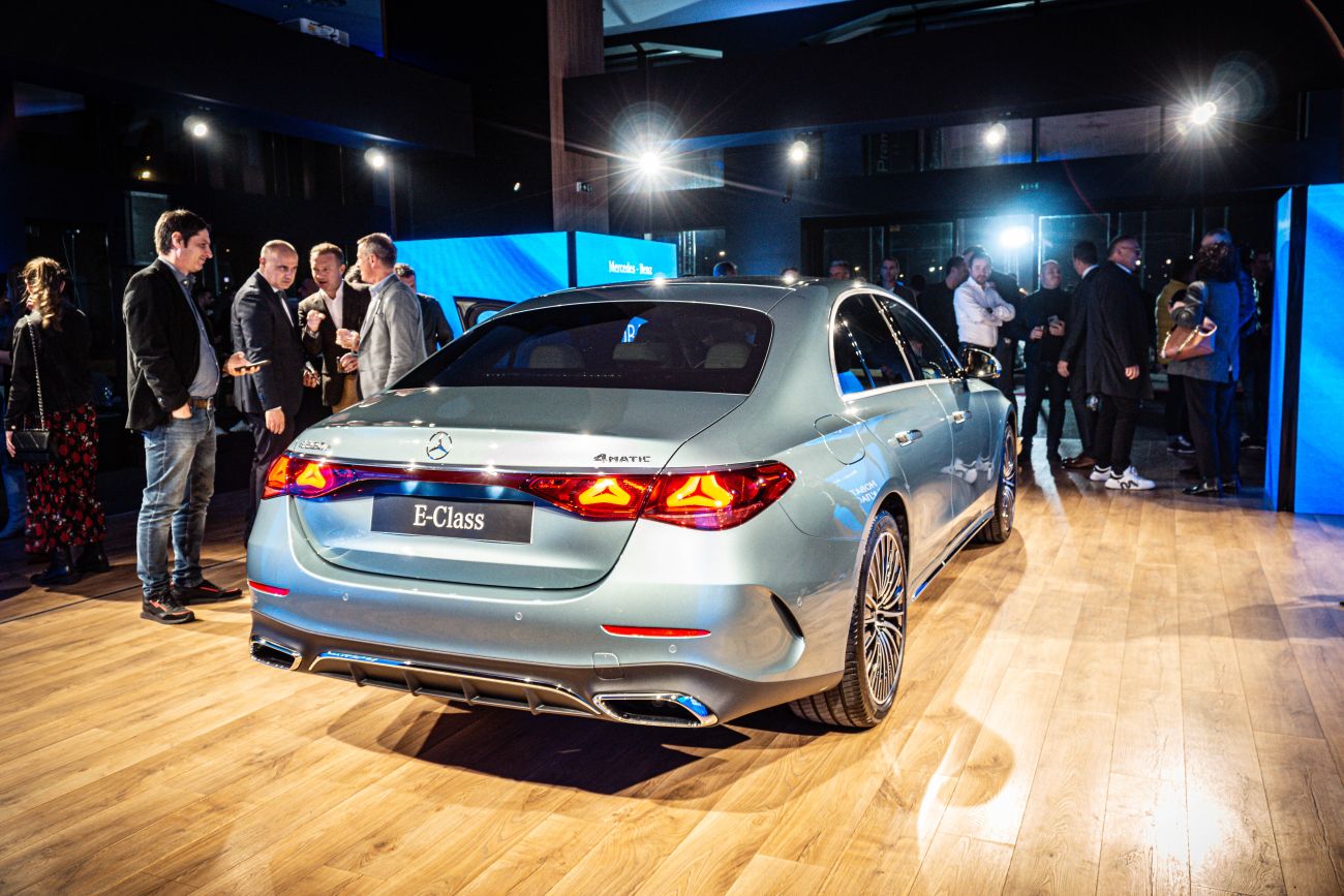 Инаку, веднаш коа се тргна прекривката ни стана јасно дека новата E-Class е уверлив Mercedes-Benz. На новиот E-Class репознаваме дизајнерски елементи кои влечат инспирација директно од знаменосецот (S-Class) но и од електричните модели на Mercedes-Benz кои ја носат ознаката EQ. За среќа, E-Class и понатаму е седан, но успева (иако е долг безмалку 5 метри) истовремено да ги истане атлетските пропорции на C-Class и достоинствените, државнички карактеристики на големиот S-Class.