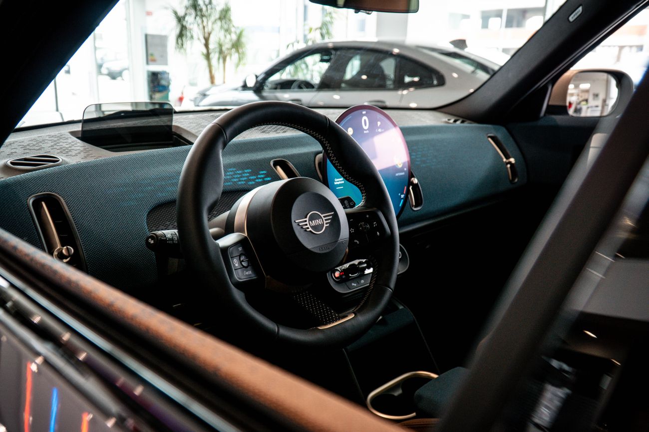 Кружниот OLED екран е единствениот дисплеј, а околу него се поставени отворите за вентилација и малкуте физички контроли кои се во кабината. Секако, Countryman добива детален хед-ап дисплеј и други супер-напредни технологии кои се очекуваат во денешните автомобили.