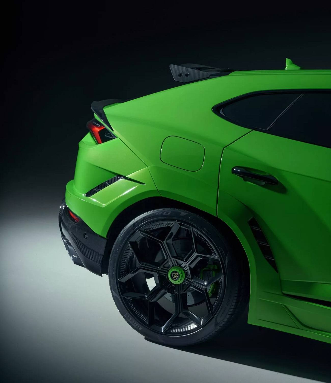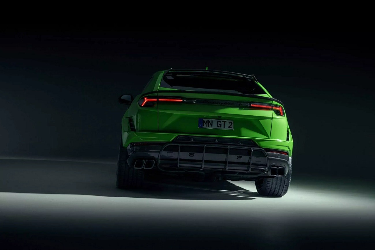 Поширокиот став на Urus добива уште поспортски изглед со помош на спуштената суспензија, сега доближувајќи го теренецот до подлогата за 25 mm. Четирите издувни цевки се обработени во мат црна боја, а улогата на тркала ја играат 23-инчните Vosen NL5.