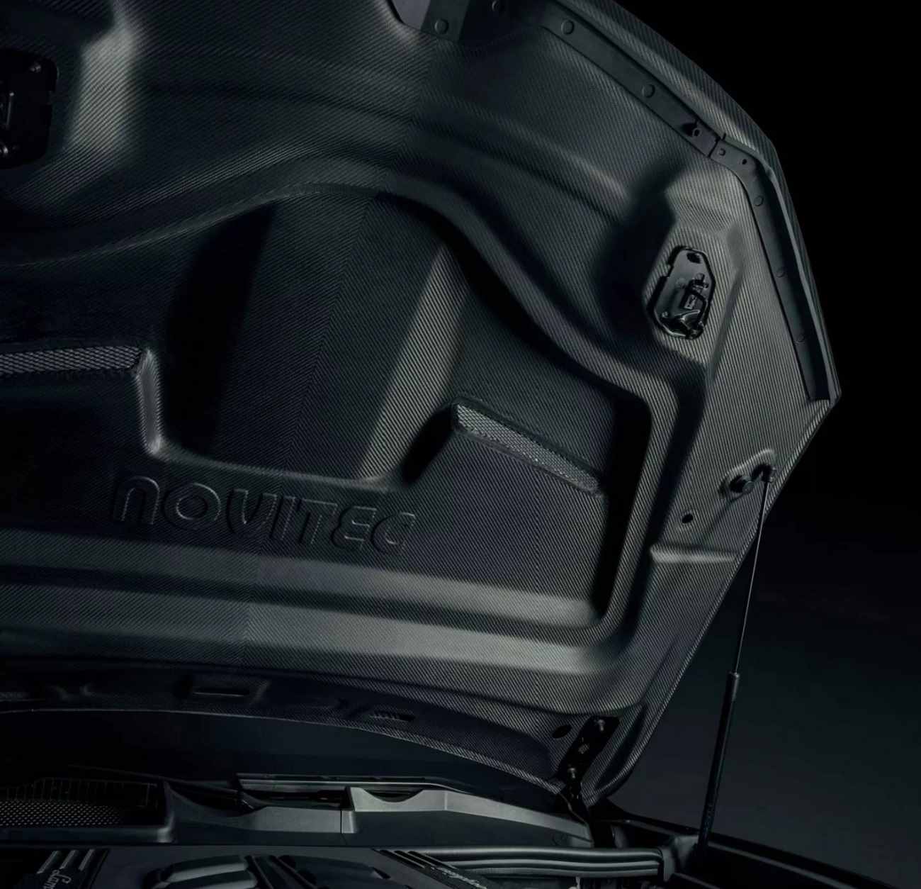 И покрај тоа што додаваат ширина од 10 mm напред и 12 mm позади, продолжетоците на браниците изгледаат како фабрички делови. Тие се искомбинирани со карбонски парчиња на сплитерот, страничните жабри, опционалната карбонска хауба, дифузерот и кровниот спојлер.
