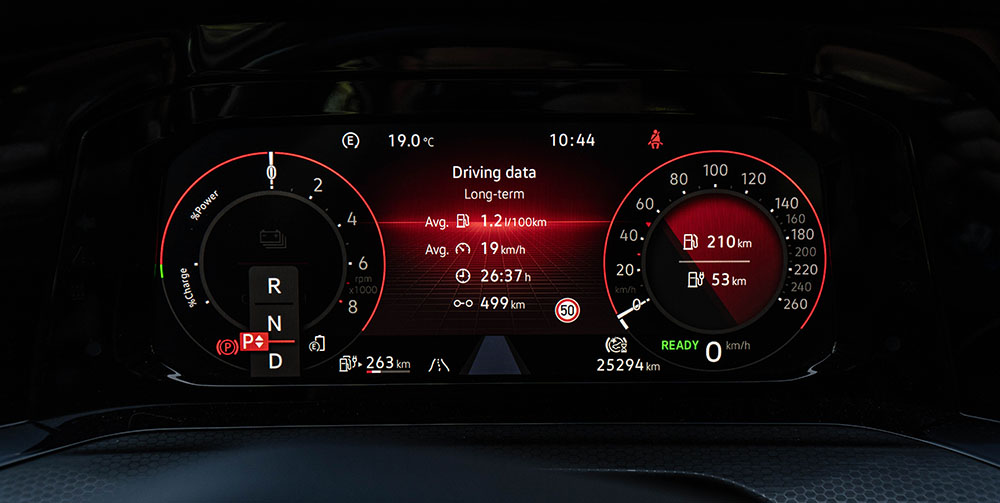Изминатиов период, потрошувачката на електрична енергија на нашиот Golf GTE опадна драстично, а автономијата се зголеми. Ако пред само два месеци просечно трошеше 22-23 kWh на 100 изминати километри, сега просечната потрошувачка (строго во градски услови на возење) е намалена на 16.8 kWh на 100 изминати километри и автономијата лесно надминува 50 километри на електрична енергија.