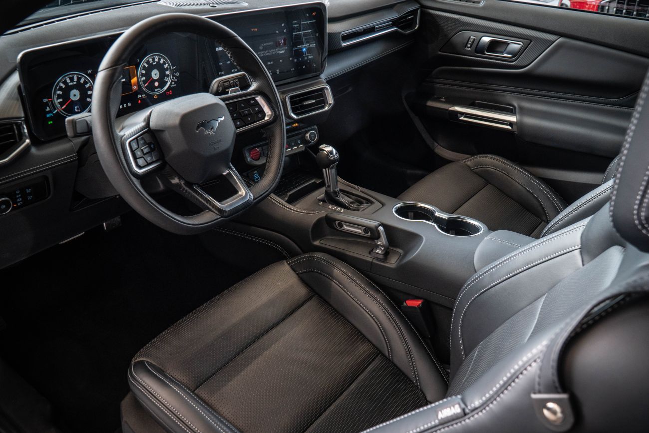 Секако, многу внимание е посветено и на ентериерот на новиот Mustang. Повторно, од Ford кажуваат дека „ова е технолошки најнапредниот ентериер во било кој Mustang досега“. Пред возачот е поставен 12.4-инчен дигитален панел со интрументи, кој пак е споен со 13.4-инчен дигитален мултимедијален уред поставен на централната конзола.