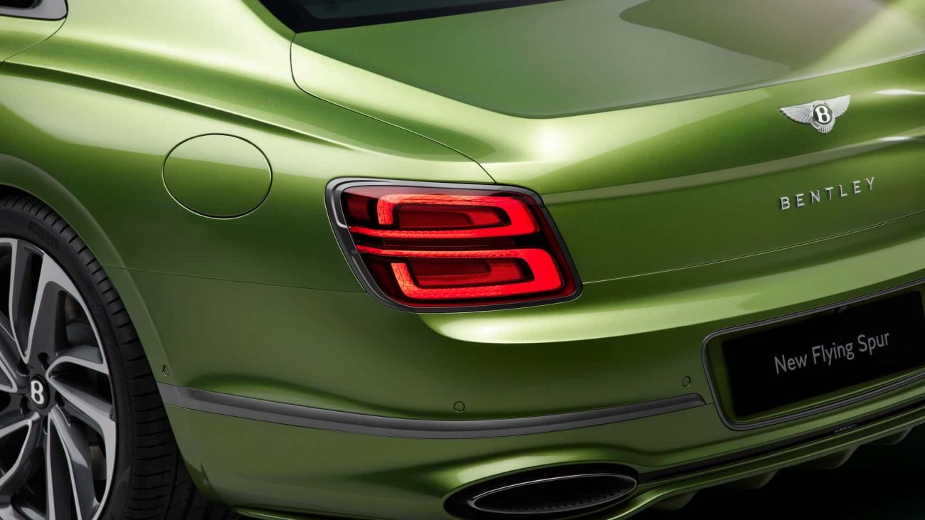 Иако стаунва збор за сосема нова генерација, визуелните разлики помеѓу новиот Flying Spur и неговиот претходник се минимални. Заоблените фарови остануваат, но возилото сега добива уникатен дизајн на предната решетка, и освежен агресивен преден браник.