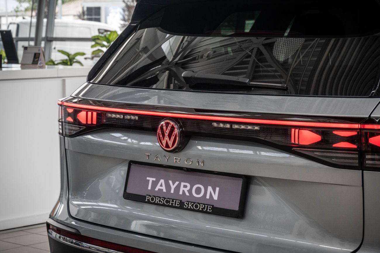Tayron е достапен со три линии на опрема: Life, Elegance и R-Line. Опсегот започнува со Tayron Life, кој веќе доаѓа со обемен пакет на опрема. Меѓу другото, добива автоматски трозонски клима уред, амбиентално осветлување, девет воздушни перничиња, неколку режими на возење, па и различни профили на возење доколку одберете 4Motion погон на сите четири тркала. Секако, тука е и огромниот нов инфозабавен мултимедијален уред со безжично Android Auto и Apple CarPlay поврзување.