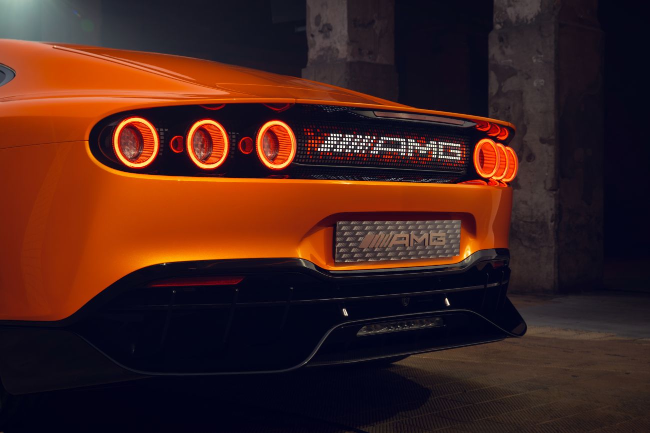 Изгледот на GT XX е интересен – и во најмала рака поларизирачки. Нема да биде за секого, ама па не ни треба да биде. Дизајнерите на Mercedes-AMG свесно евоцираат спомени на легендарниот C111, особено кај препознатливата портокалова боја. Сепак, препознаваме современи – и многу, многу кул – елементи, како на пример LED задните светла.