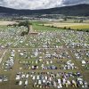 This aerial photograph shows a view of the 24th World meeting of Citroen 2CV friends near Delemont, northern Switzerland. –AFP photos