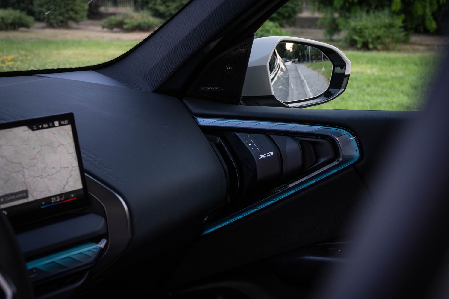 Немаме забелешки на амбиентот во X3. Амбиенталното осветлување е одлично (иако под одредени агли ноќе се рефлектира на стаклените површини), финалната обработка е одлична, а повеќето површини се обвиени со квалитетни и скапи материјали, или пак квалитени пластики.