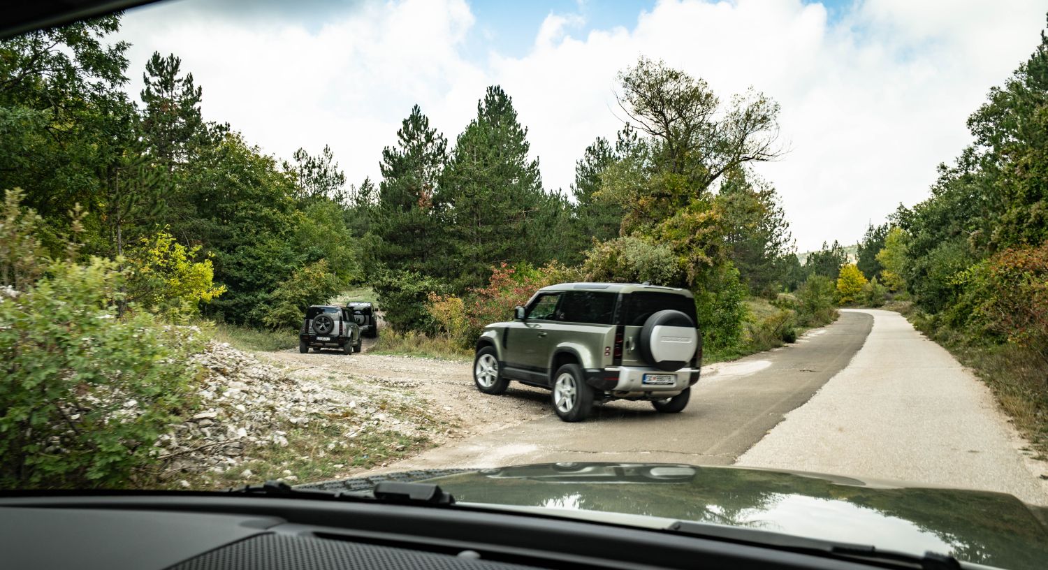 По краткото претставување на проектот и дискусија околу историјата на Defender, одиме на кратка, но интересна и предизвикувачка теренска авантура. И ако големиот теренец изгледа огромен на градските улици, кога е на терен – тој едноставно припаѓа таму.