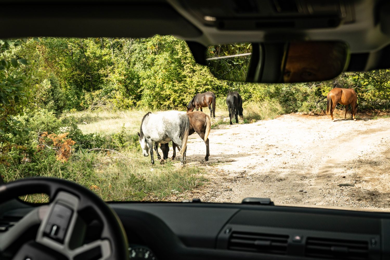 Теренските патишта низ кои минуваме не се никаков предизвик за Defender и неговиот супер-напреден погон. Едноставно – еден по еден, минуваме преку макадам, камења, па и вода и кал. И нема проблем. Едноставно – нема проблем.