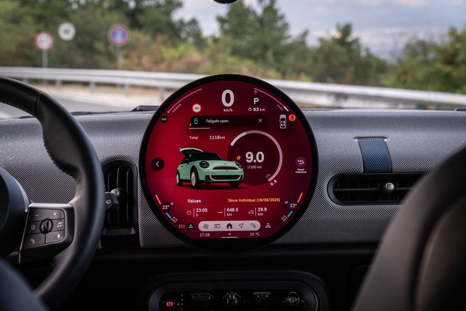 Дали имаме некаква забелешка за искуството зад воланот? Па би сакале да можевме самите да менуваме брзини, но MINI одлучи целосно да го исфрли мануелниот менувач од понудата, а нашиот тестен автомобил немаше ниту лопатки за рачно менување брзини.